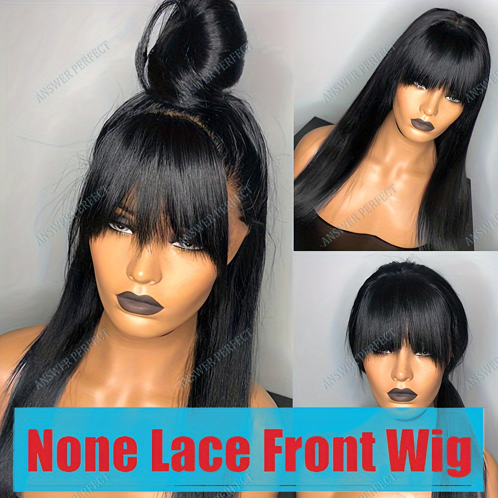 250% Density Brazilian Virgin Straight Human Hair Wig with Bangs - Glueless Machine-Made Lace Front Wig for Women, Natural Color, Elegant Style, Suitable for All Light Beige Tones