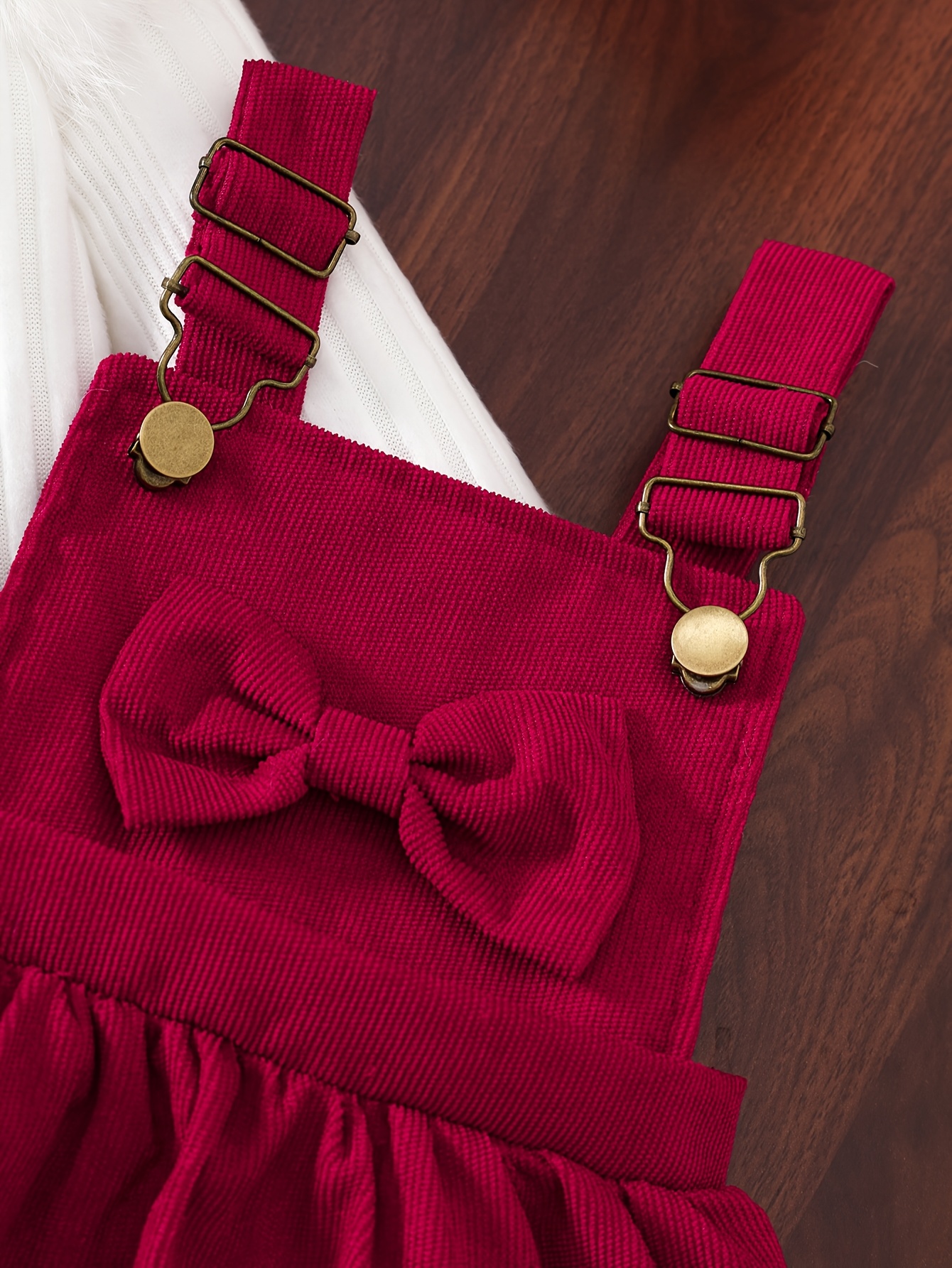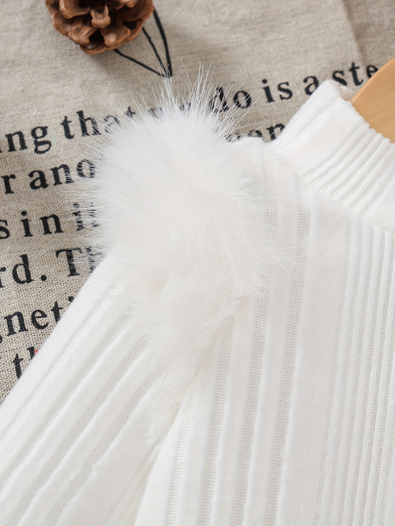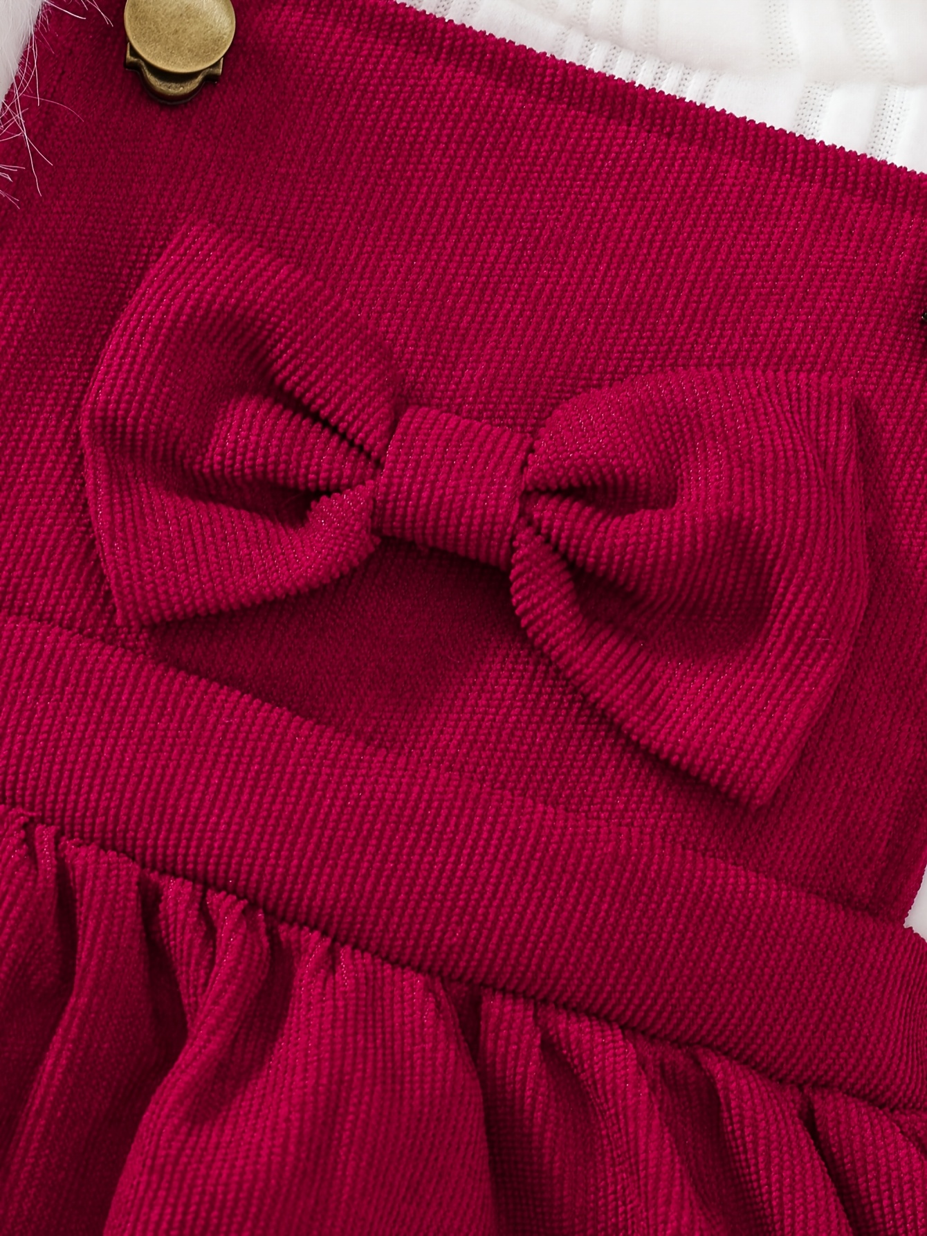 Weaving Method: Knit Fabric2pcs Baby Winter Outfit Set: Cozy Fluffy Sleeve Smock Dress & A-Line Bow with Collar & Fringe Trim - Soft Warm Clothes for Photoshoots, Christmas (Hand Washable), Perfect for Outdoor