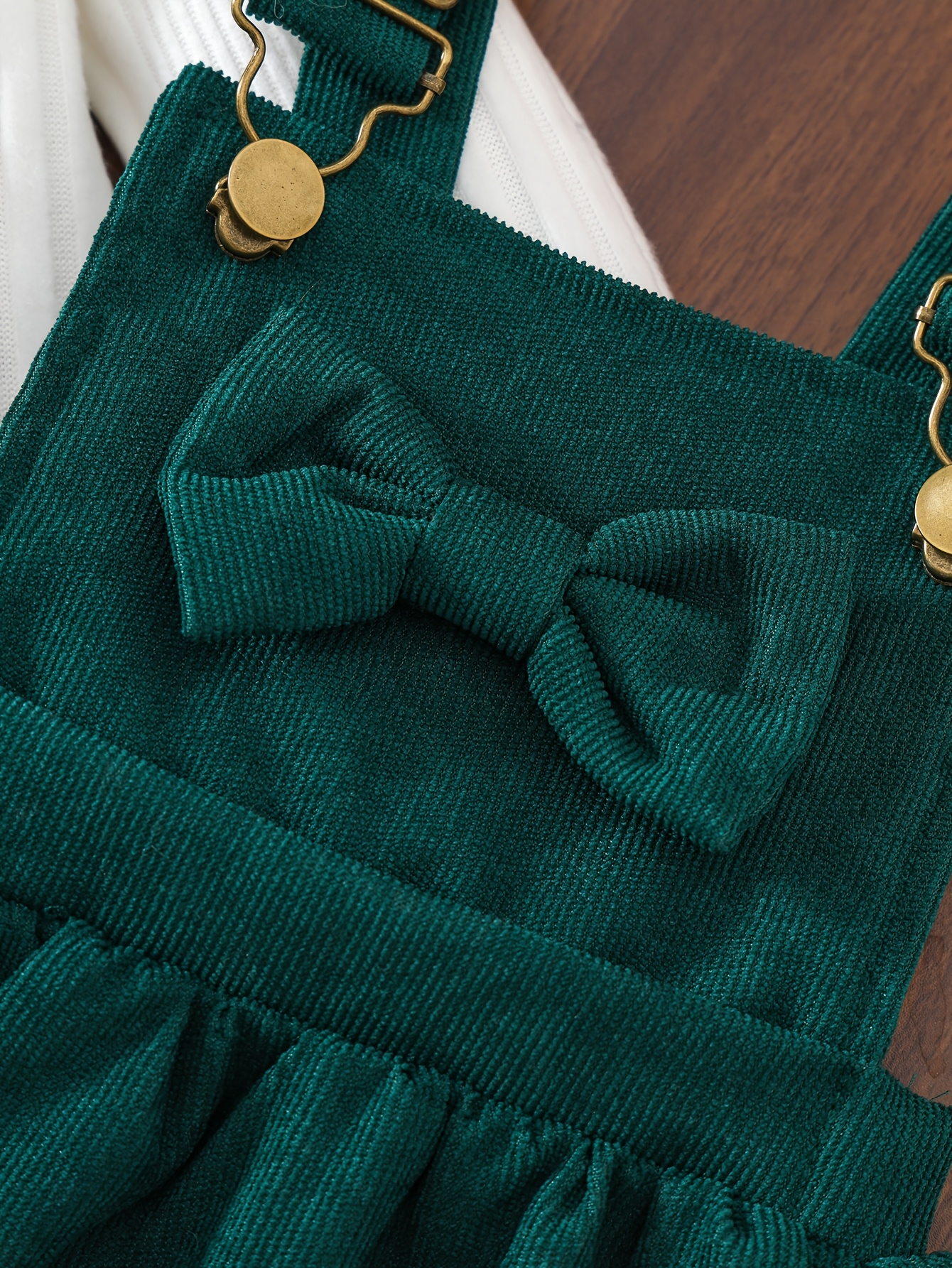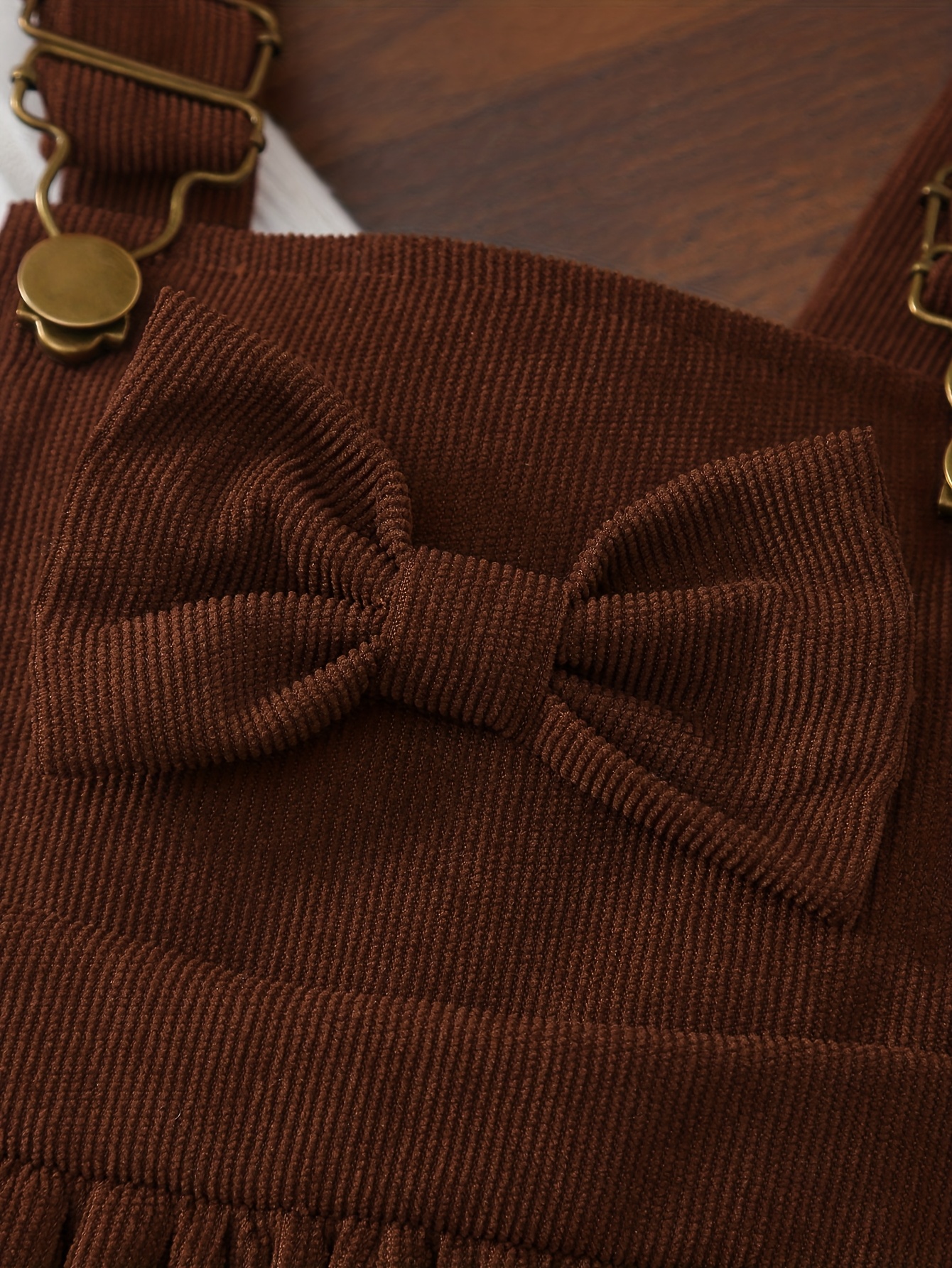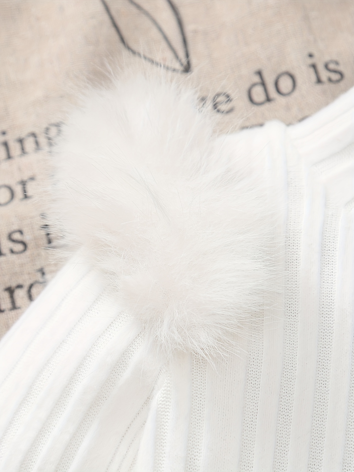Weaving Method: Knit Fabric2pcs Baby Winter Outfit Set: Cozy Fluffy Sleeve Smock Dress & A-Line Bow with Collar & Fringe Trim - Soft Warm Clothes for Photoshoots, Christmas (Hand Washable), Perfect for Outdoor