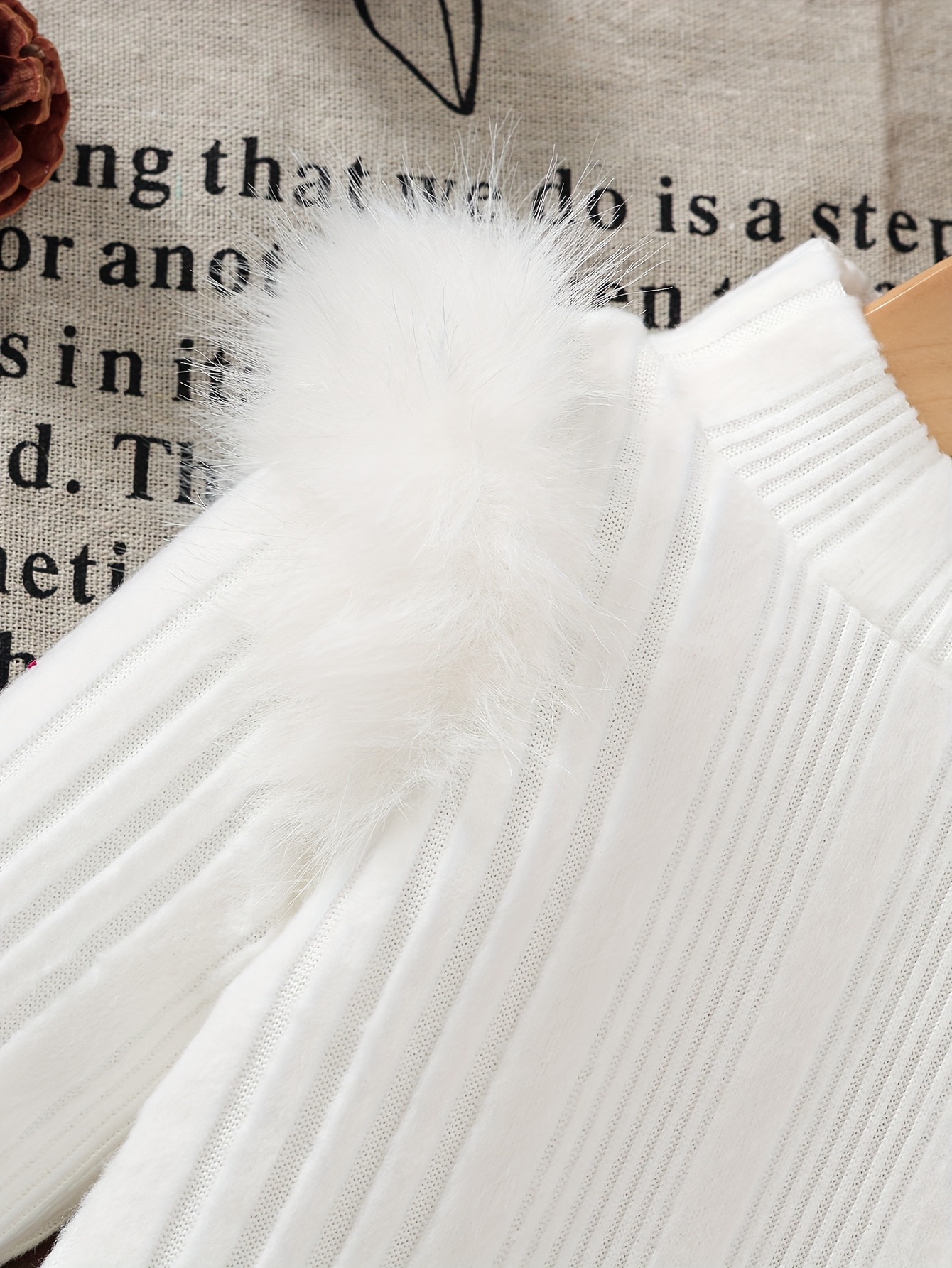2pc Fluffy Sleeve Smock Dress Winter Set