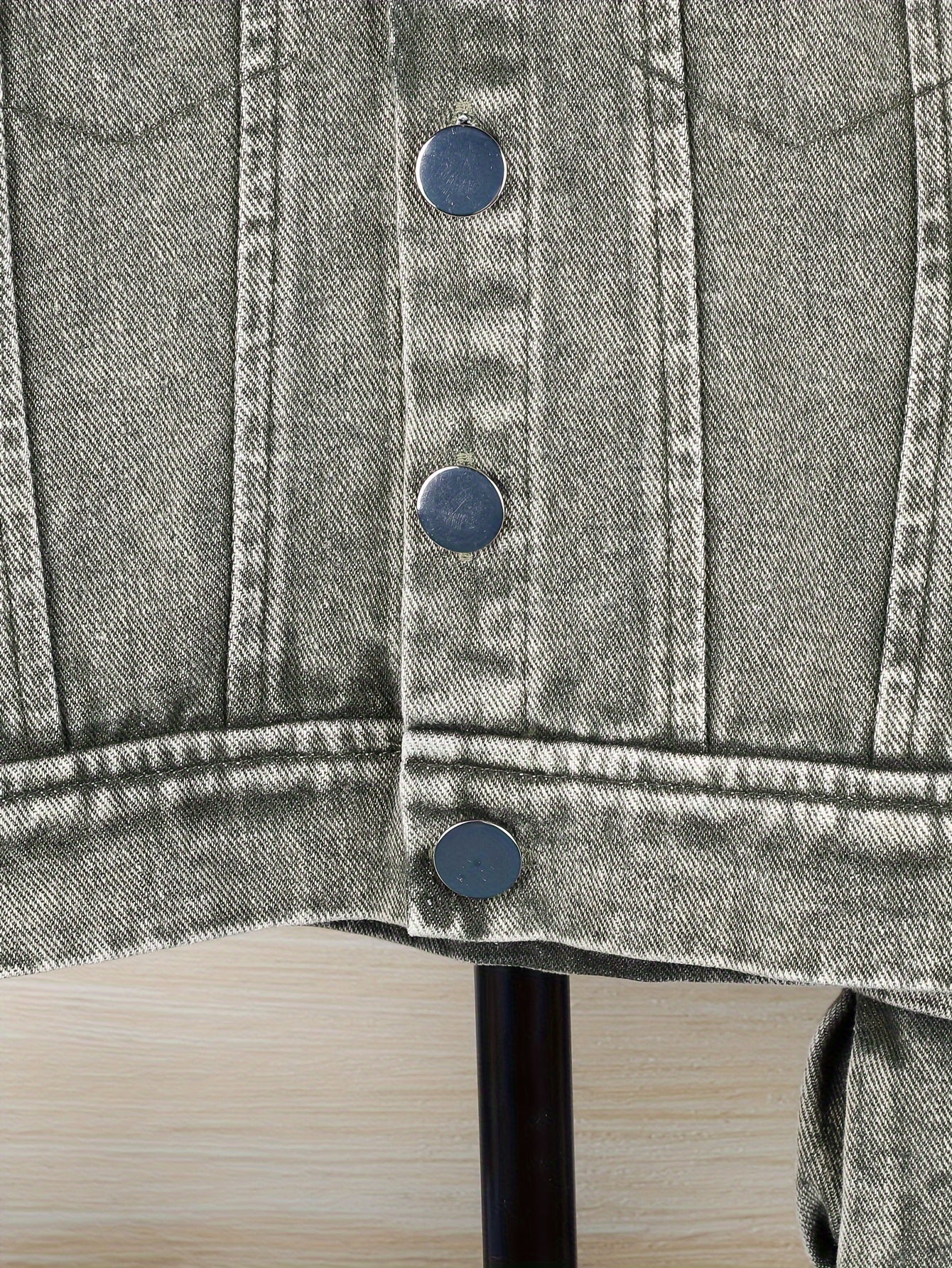 2pcs Boys' Western Cowboy Outfit Set - Distressed Denim Jacket, Jeans| Heavy-Duty Button-Up Front, Fall/Winter Casual Clothes, Casual Attire & Themed Events, Hand Washable Cowboy Set With Classic Western Style, Non-Stretch