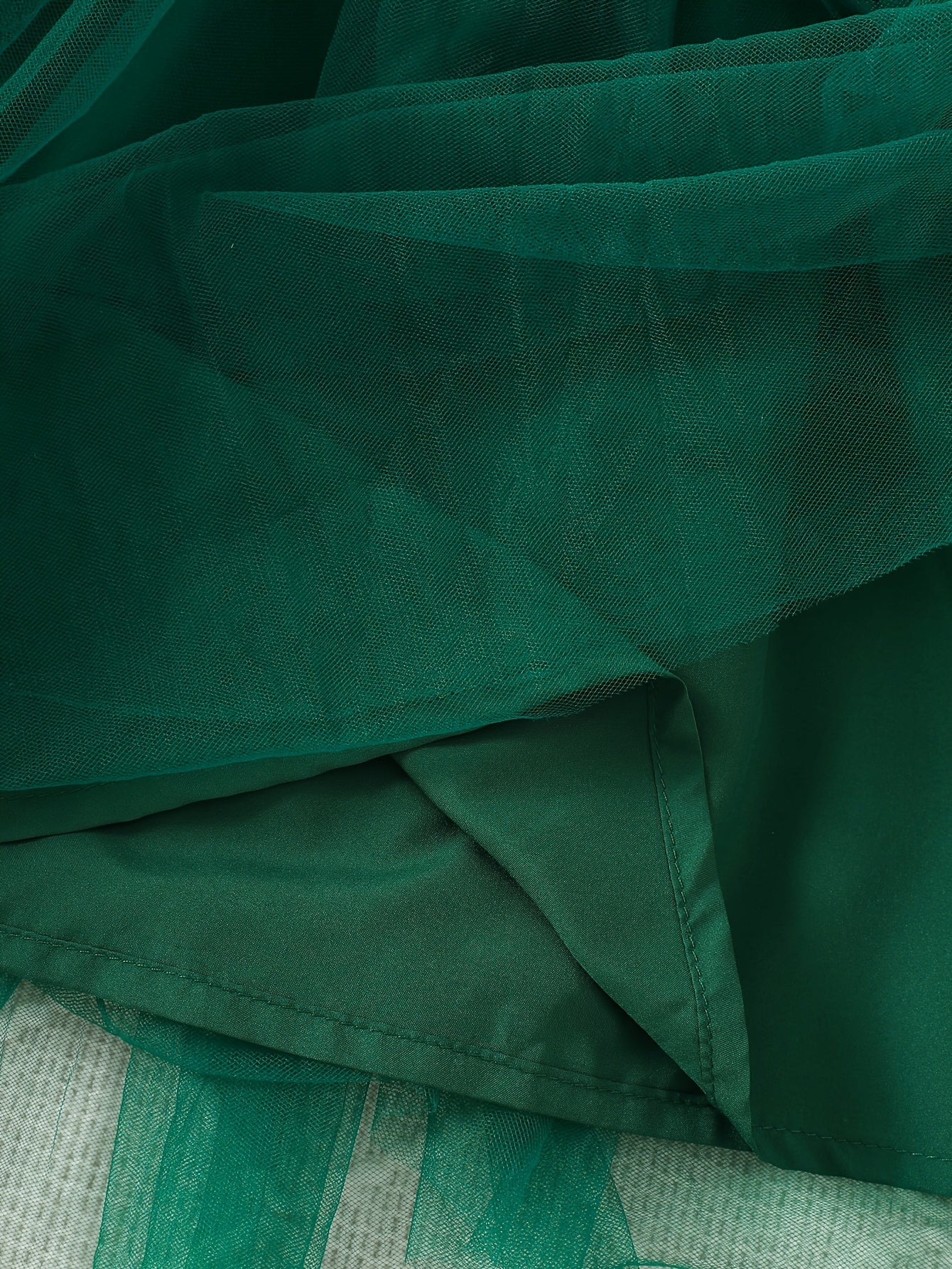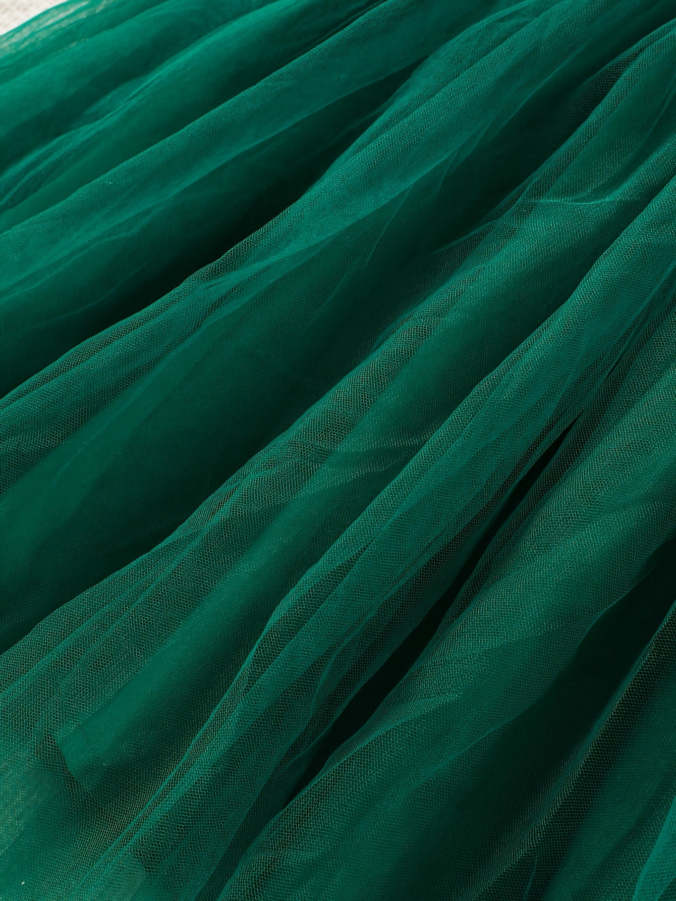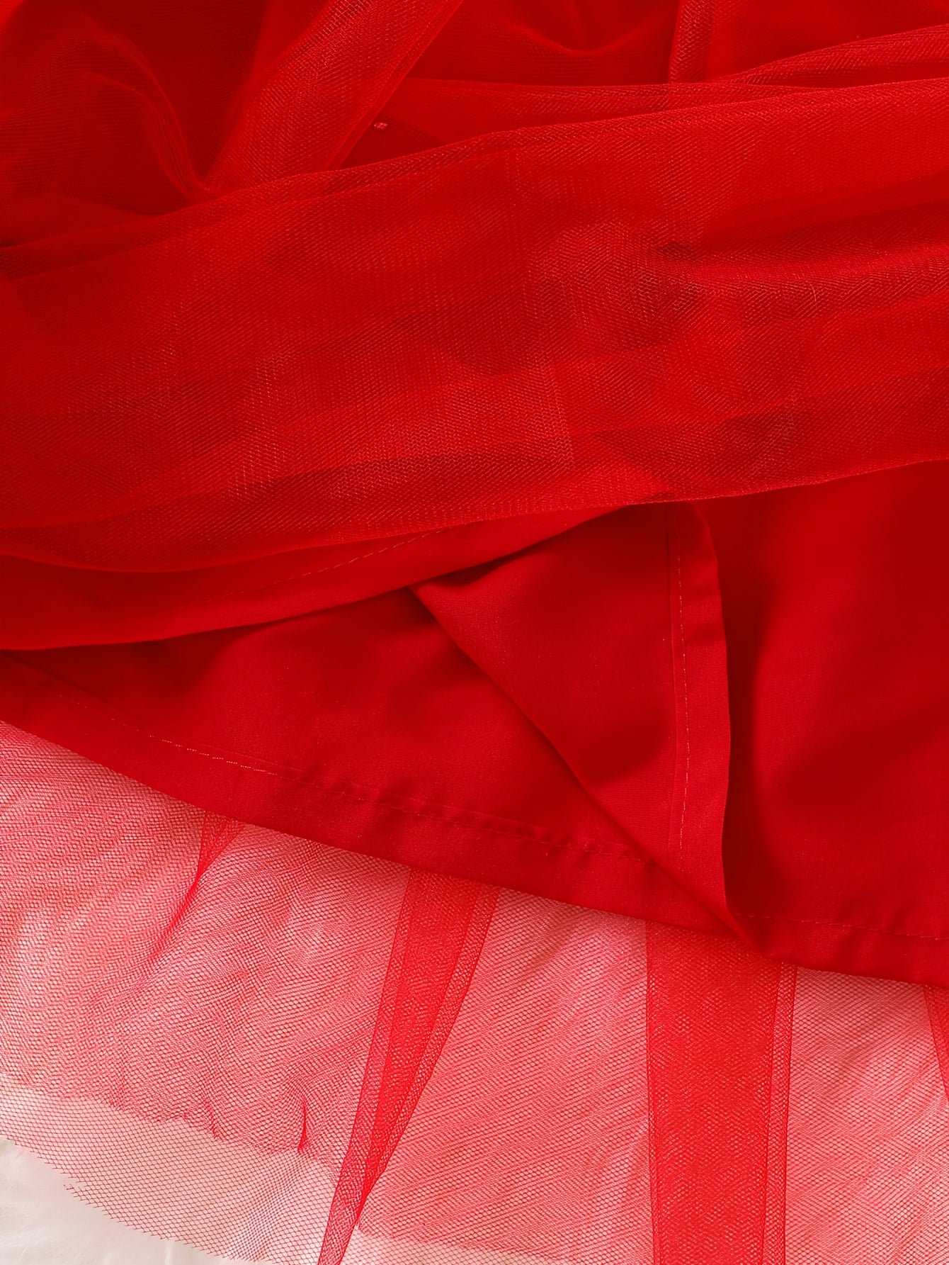 2pc Girls' Furry Coat & Spaghetti Strap Mesh Dress Set
