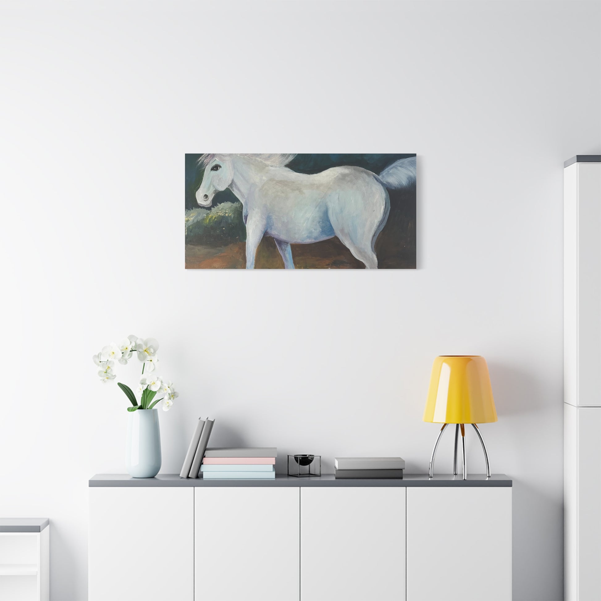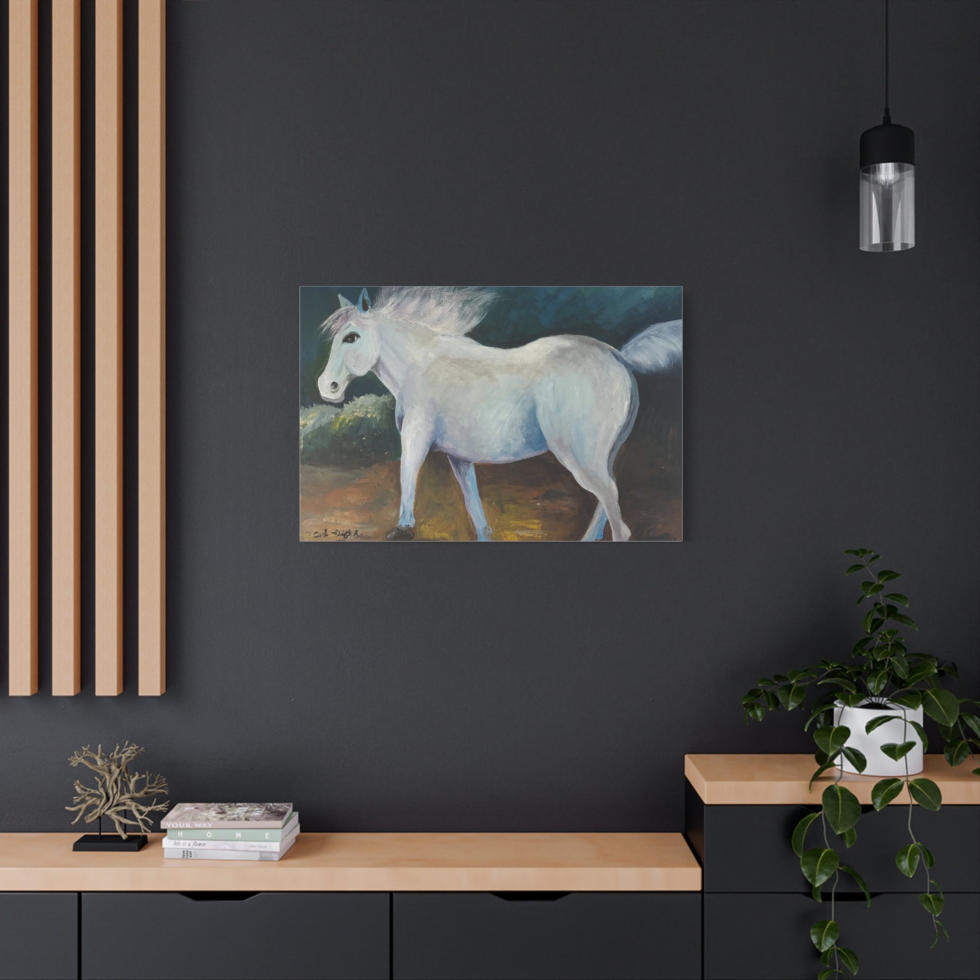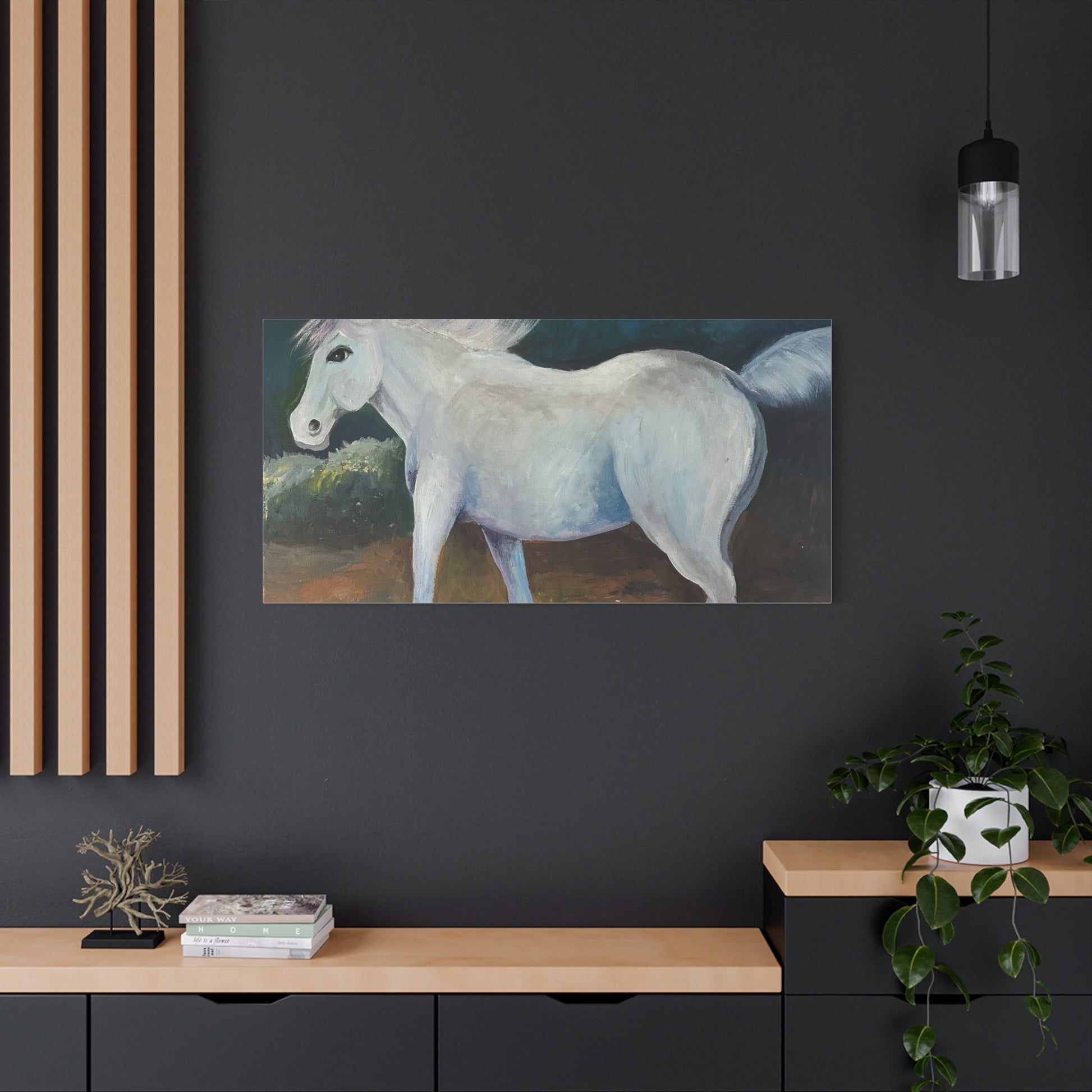 Bring a touch of elegance to your home with this beautiful white horse canvas print. Perfect for horse lovers or anyone looking to add a peaceful and serene vibe to their space. Ideal for homes, offices, or as a thoughtful gift for animal lovers. Great for decorating during horse racing events, horse appreciation days, or equestrian themed celebrations.