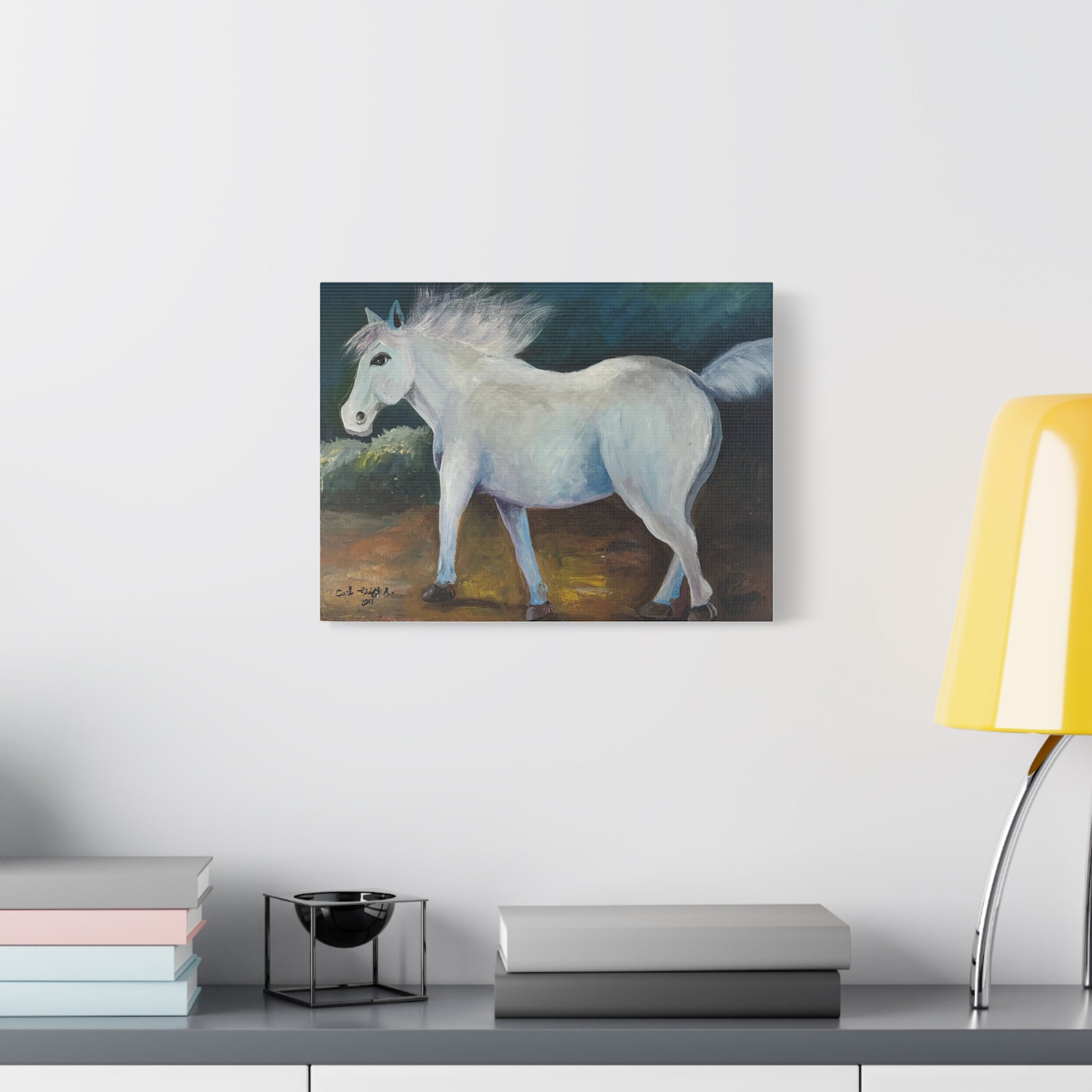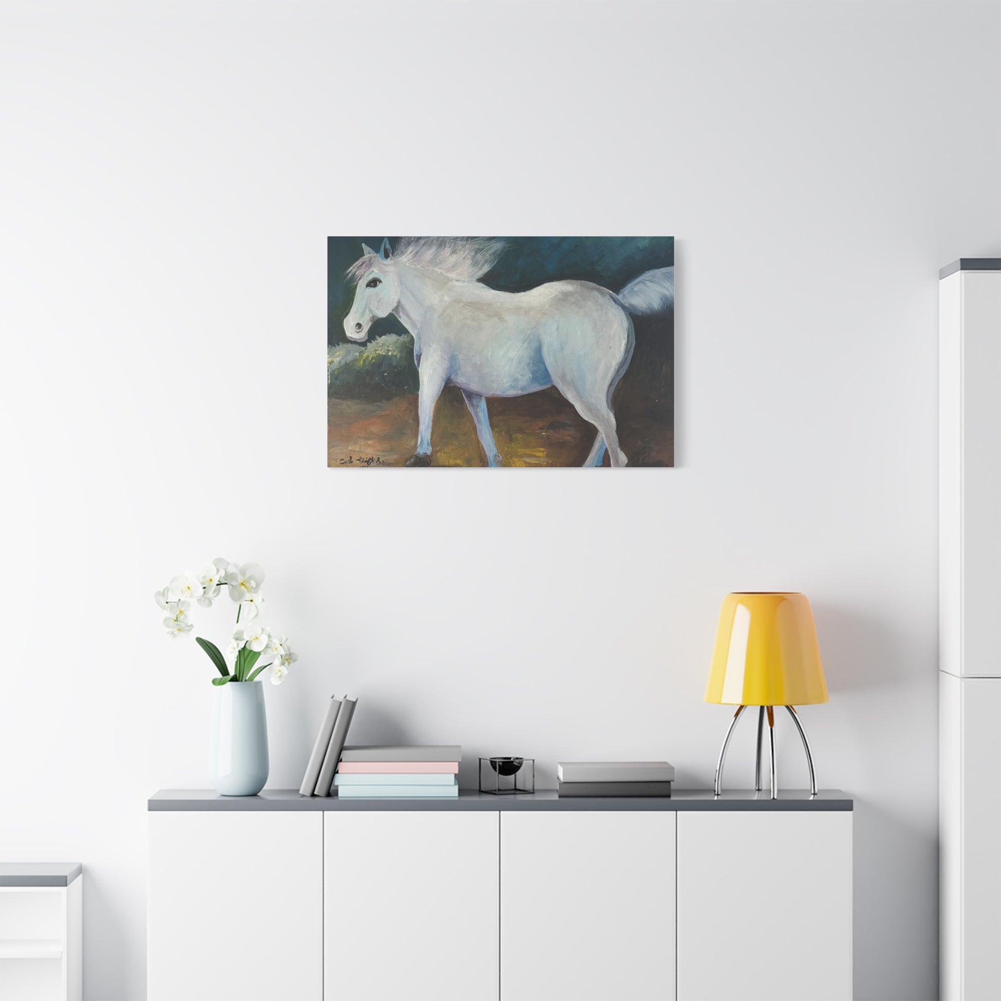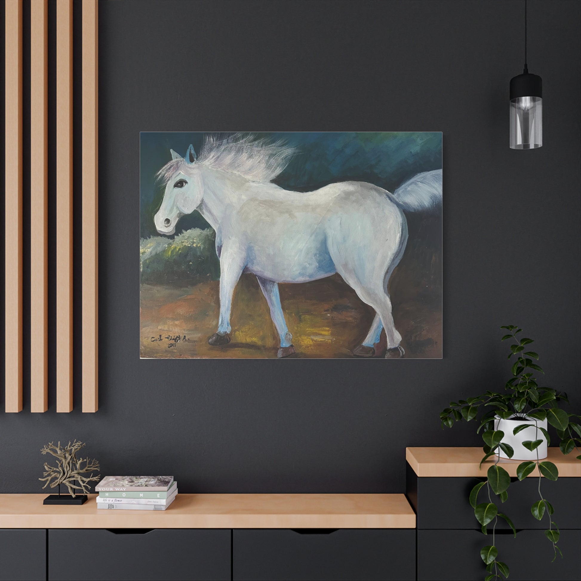 Bring a touch of elegance to your home with this beautiful white horse canvas print. Perfect for horse lovers or anyone looking to add a peaceful and serene vibe to their space. Ideal for homes, offices, or as a thoughtful gift for animal lovers. Great for decorating during horse racing events, horse appreciation days, or equestrian themed celebrations.