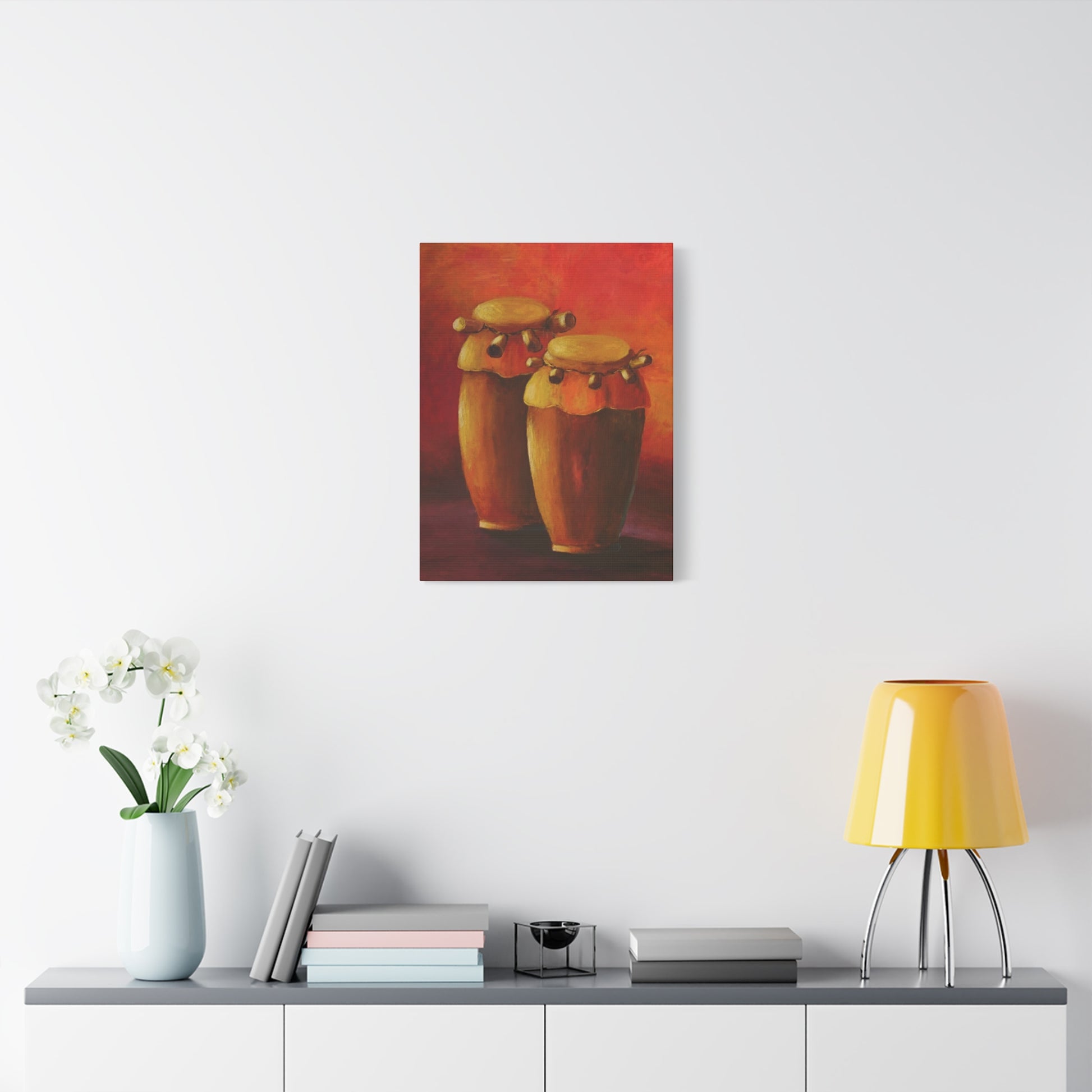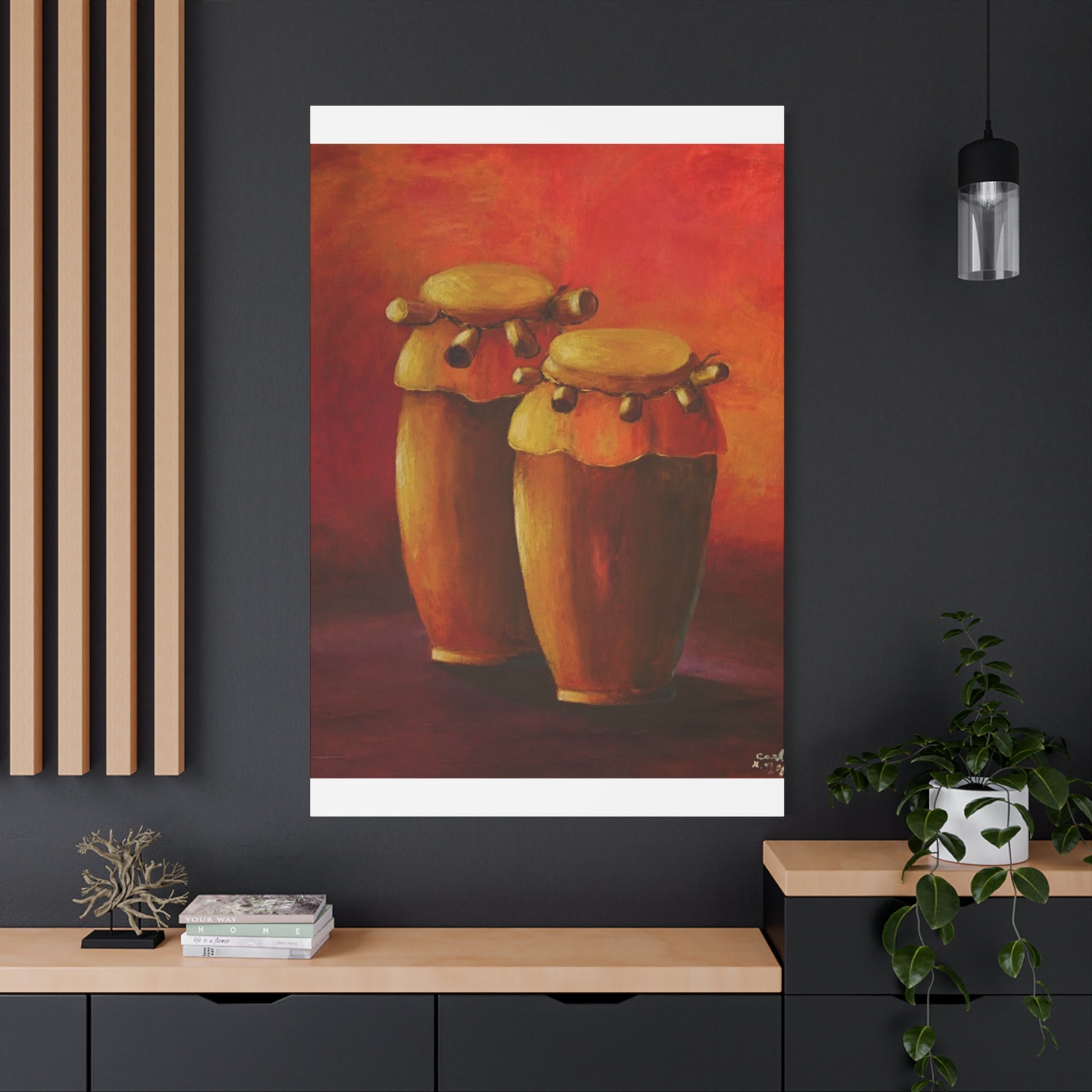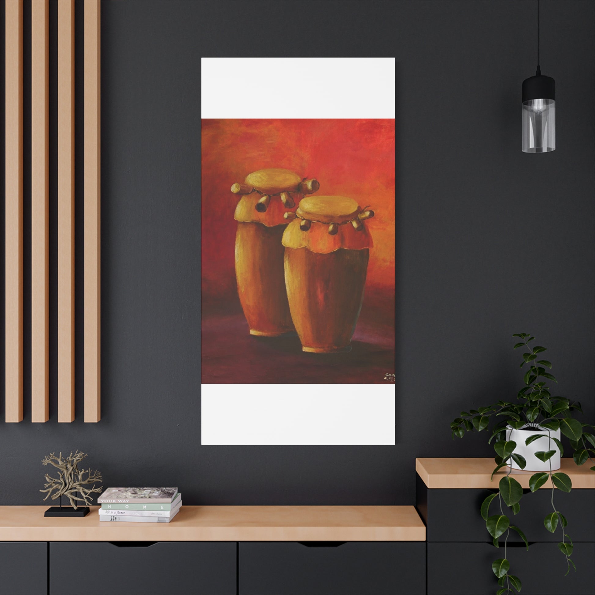 This Haitian music instrument drum canvas print gives a vibrant and lively vibe to any room. Perfect for music enthusiasts and those looking to add a cultural touch to their decor. Ideal for musicians, music teachers, and those celebrating Haitian culture.