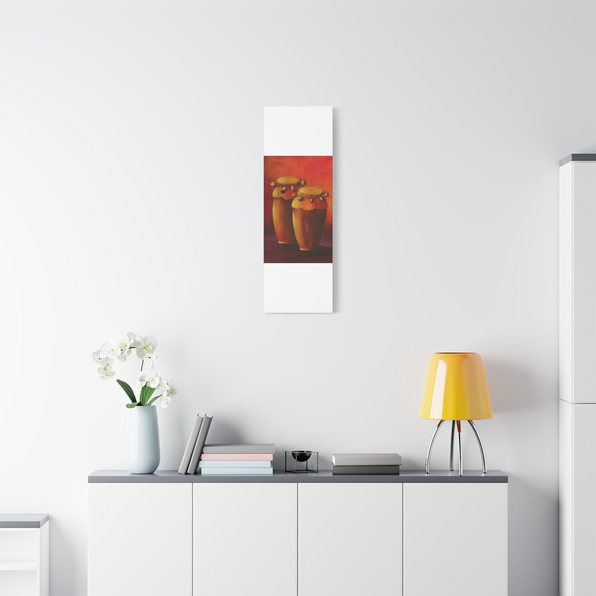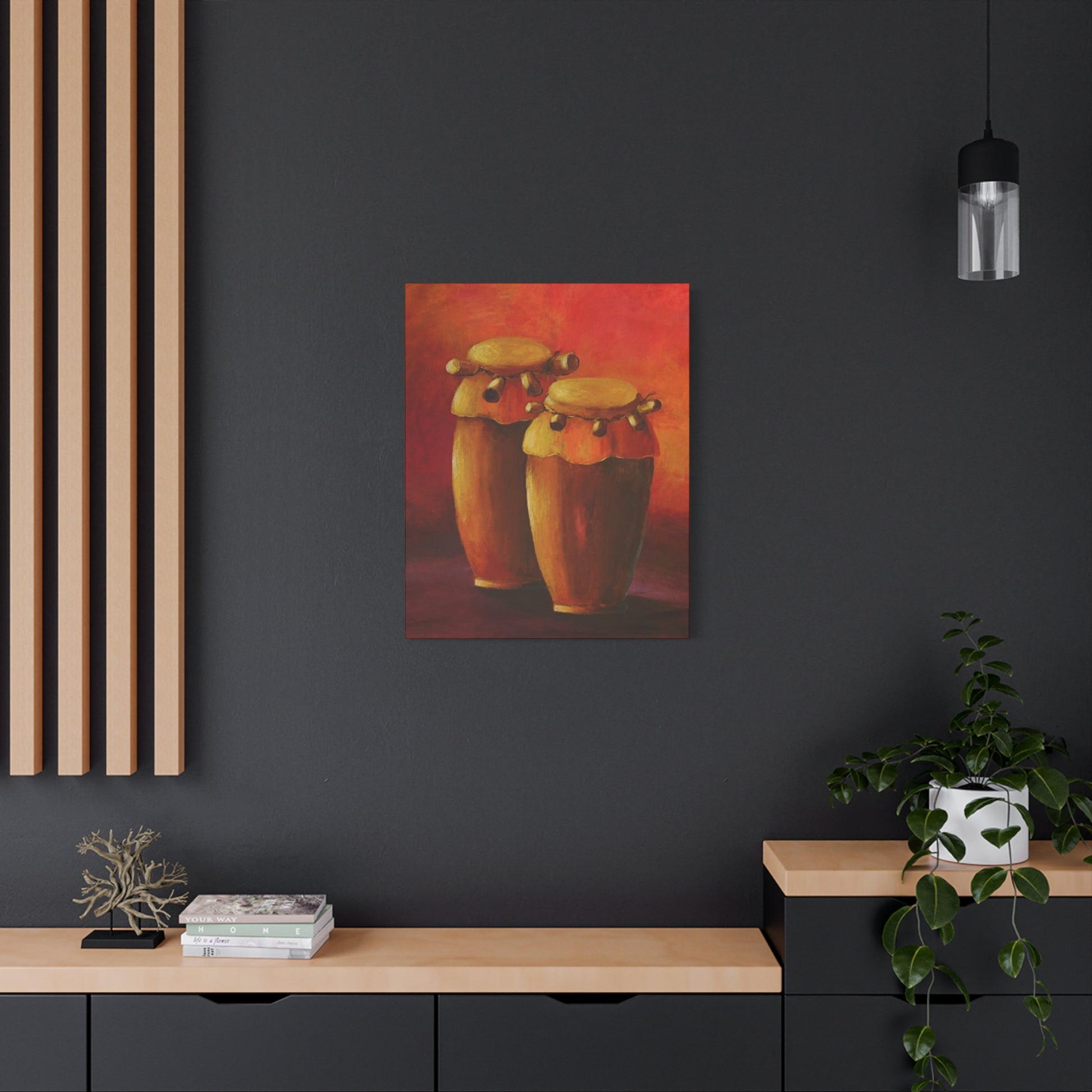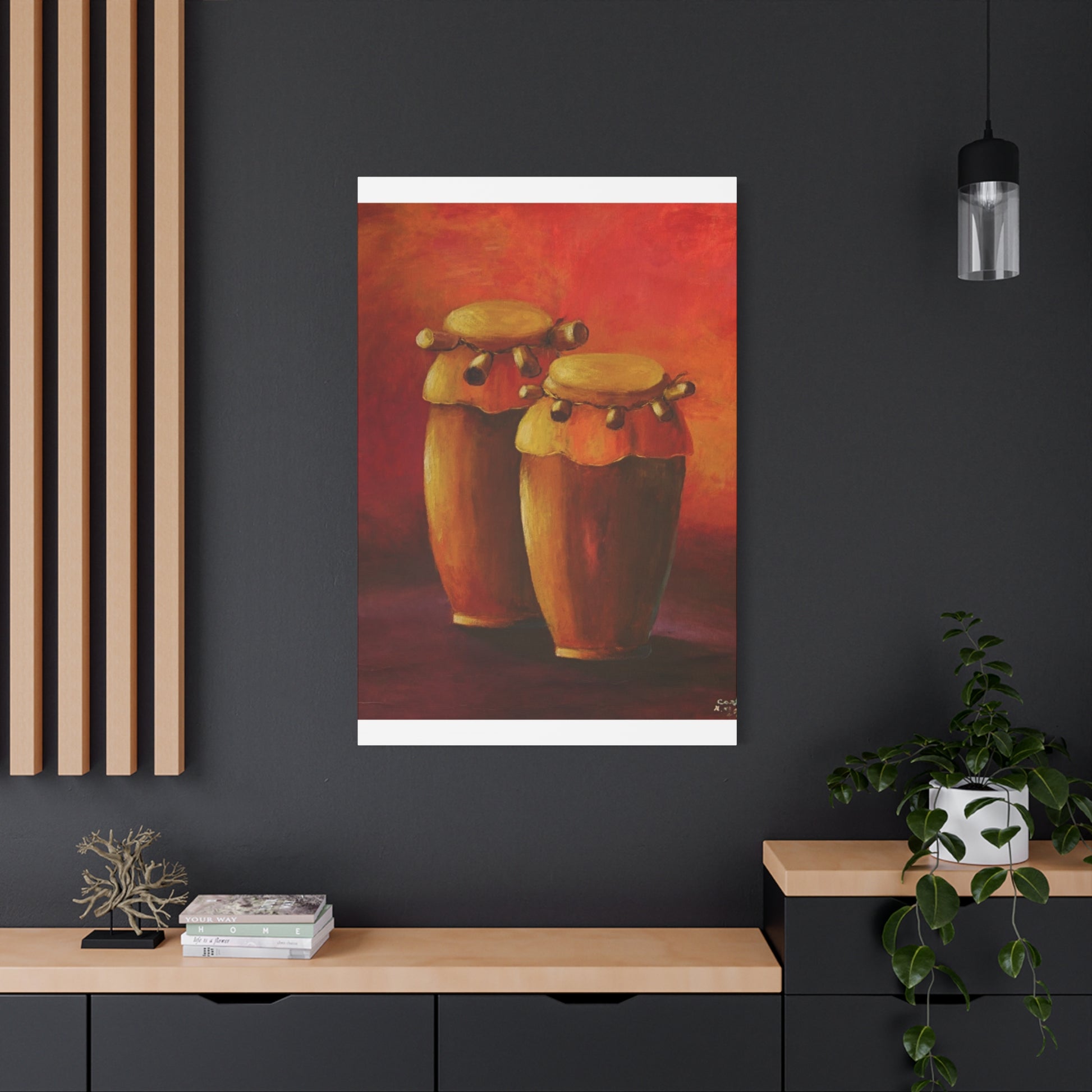 This Haitian music instrument drum canvas print gives a vibrant and lively vibe to any room. Perfect for music enthusiasts and those looking to add a cultural touch to their decor. Ideal for musicians, music teachers, and those celebrating Haitian culture.