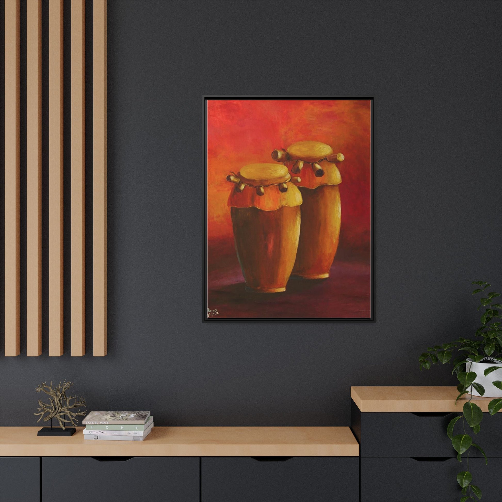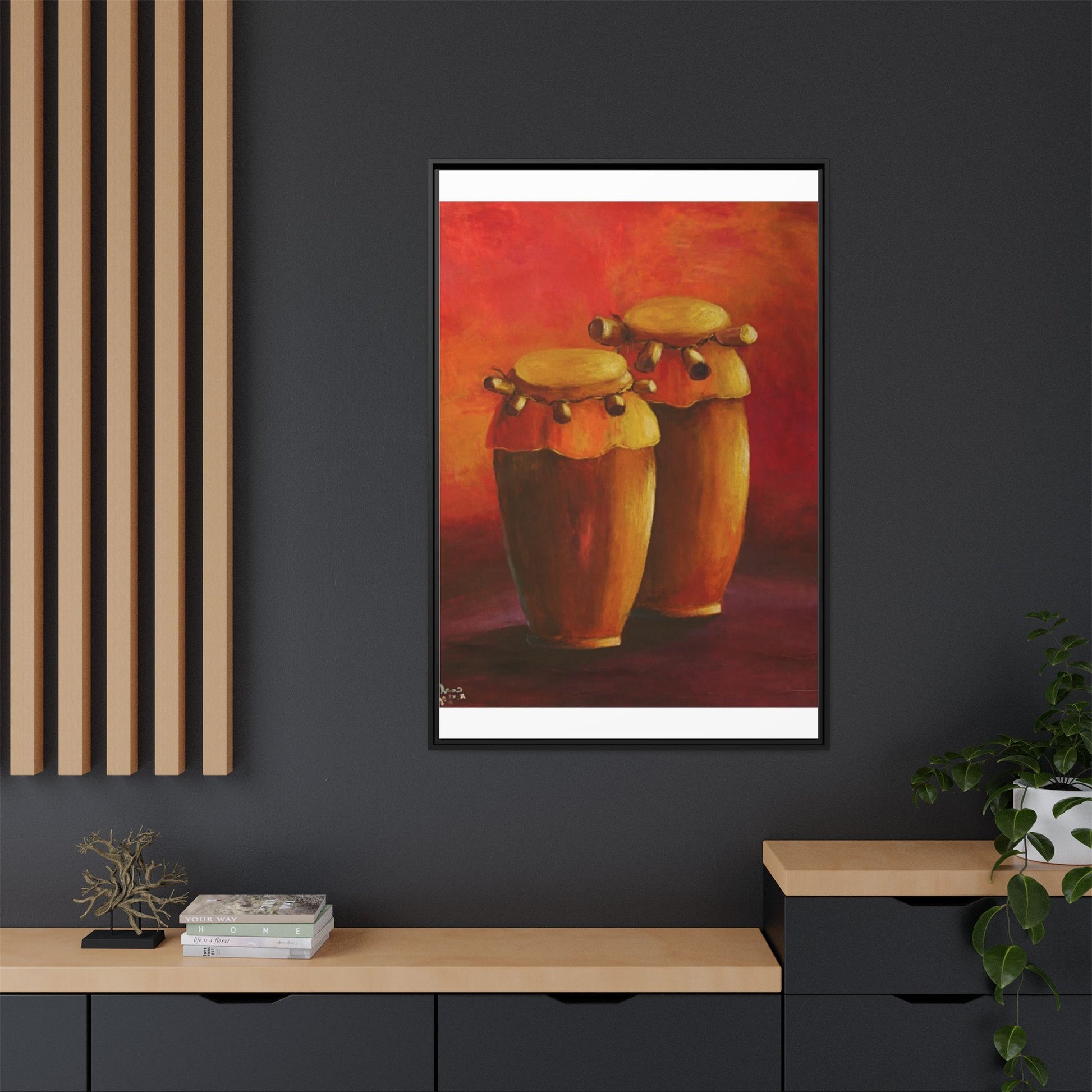 Canvas Wall Art - Haiti Cultural Drum, Matte Canvas, Framed