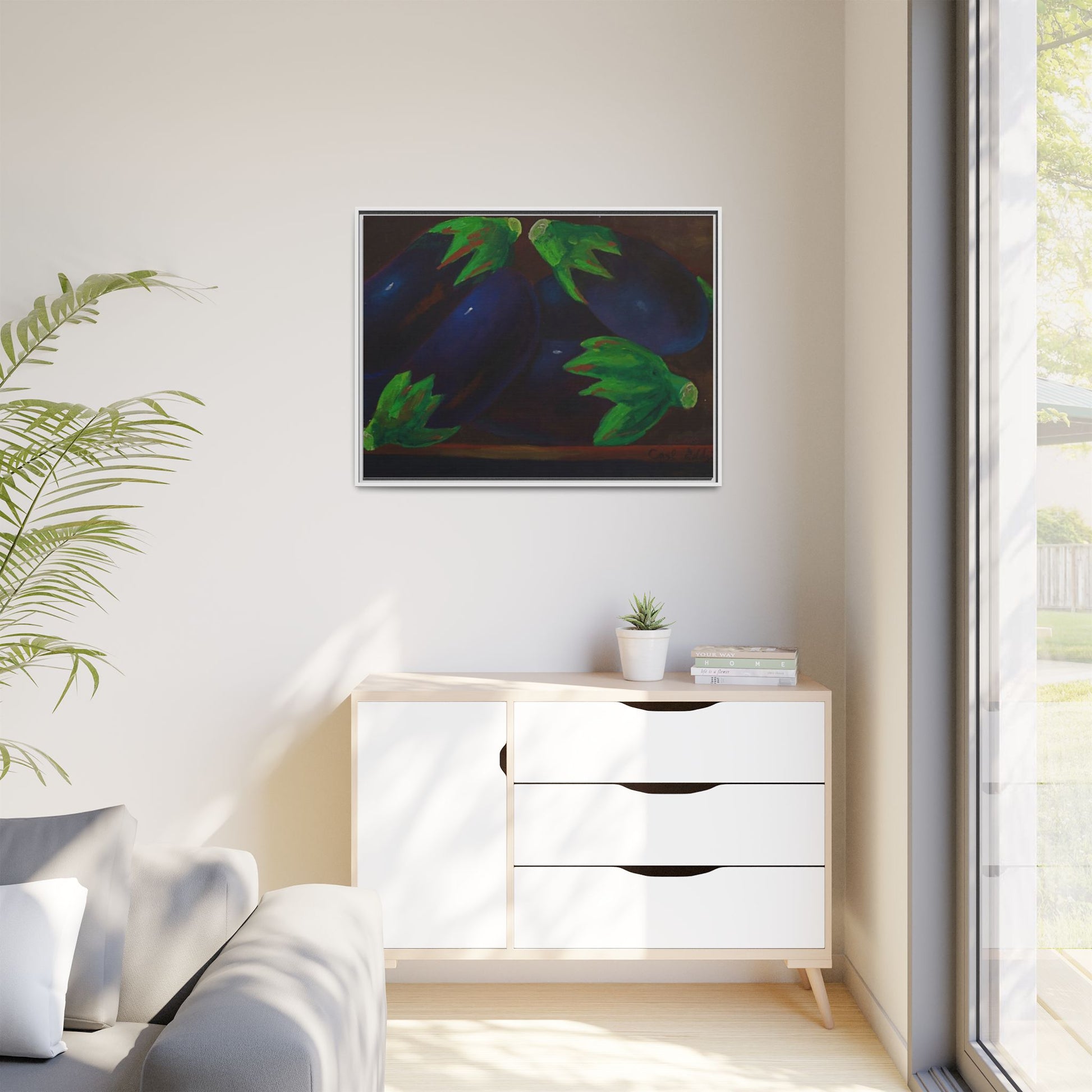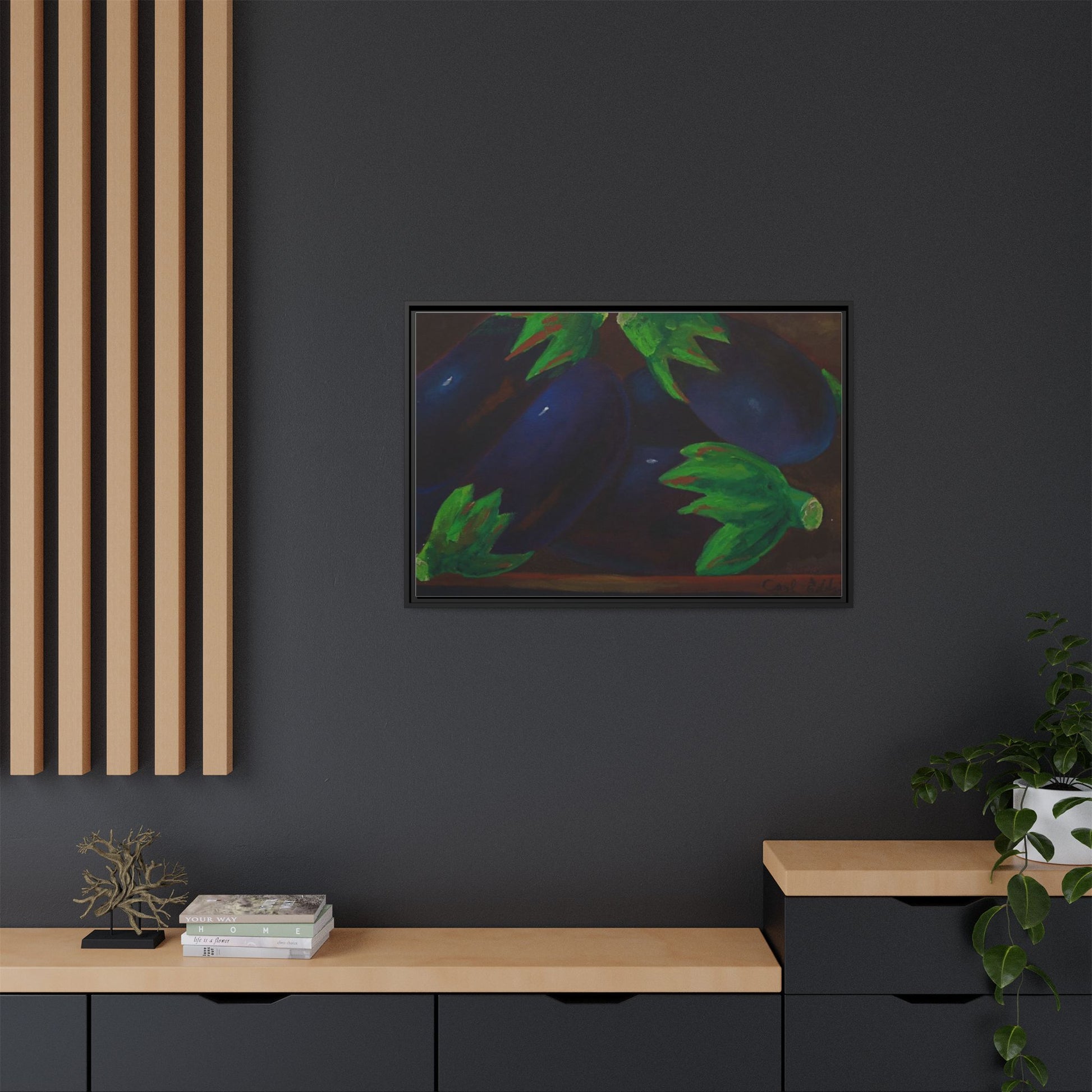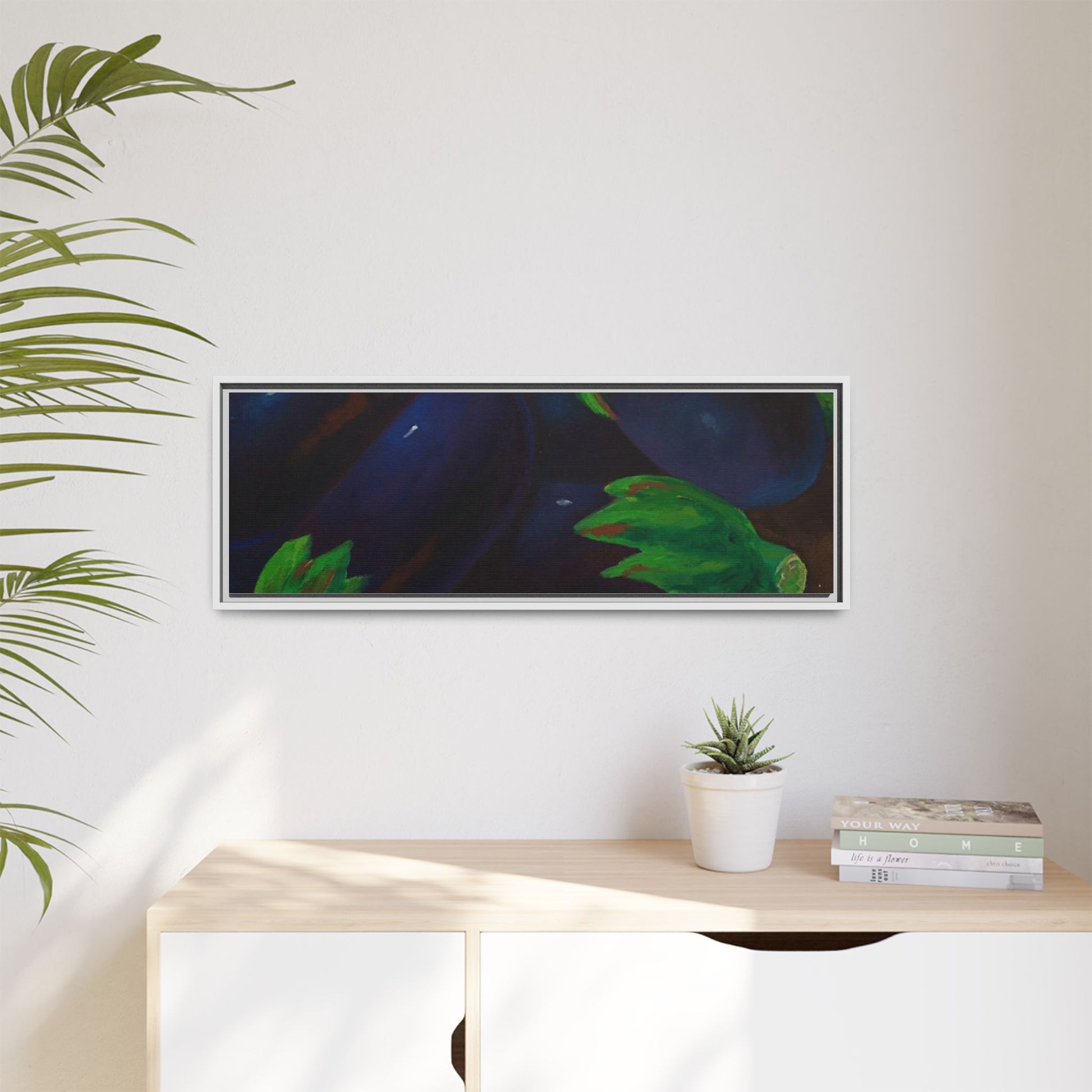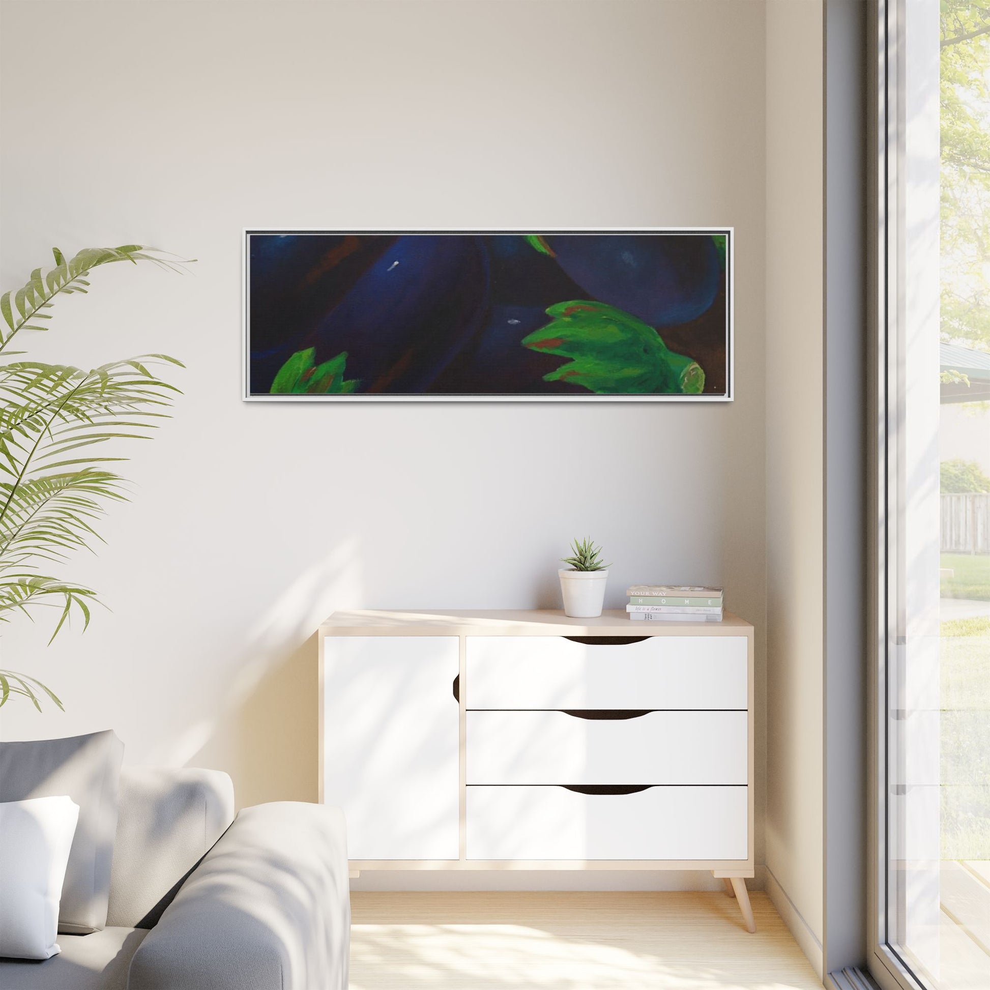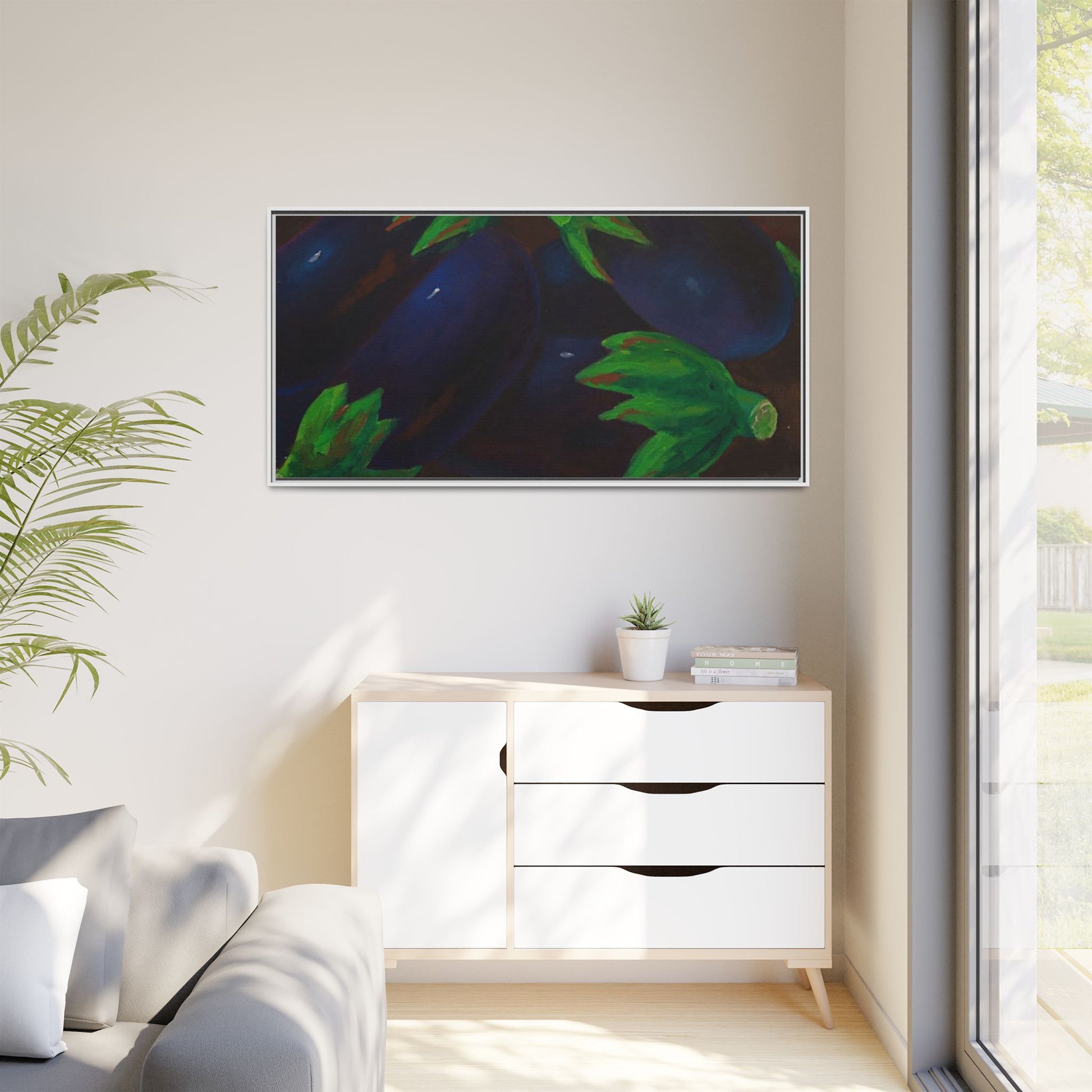 A tropical eggplant-themed canvas print that adds a touch of exotic charm to any room. Perfect for nature lovers and those seeking a unique wall decor piece. Ideal for home decoration, tropical-themed parties, and summer celebrations.