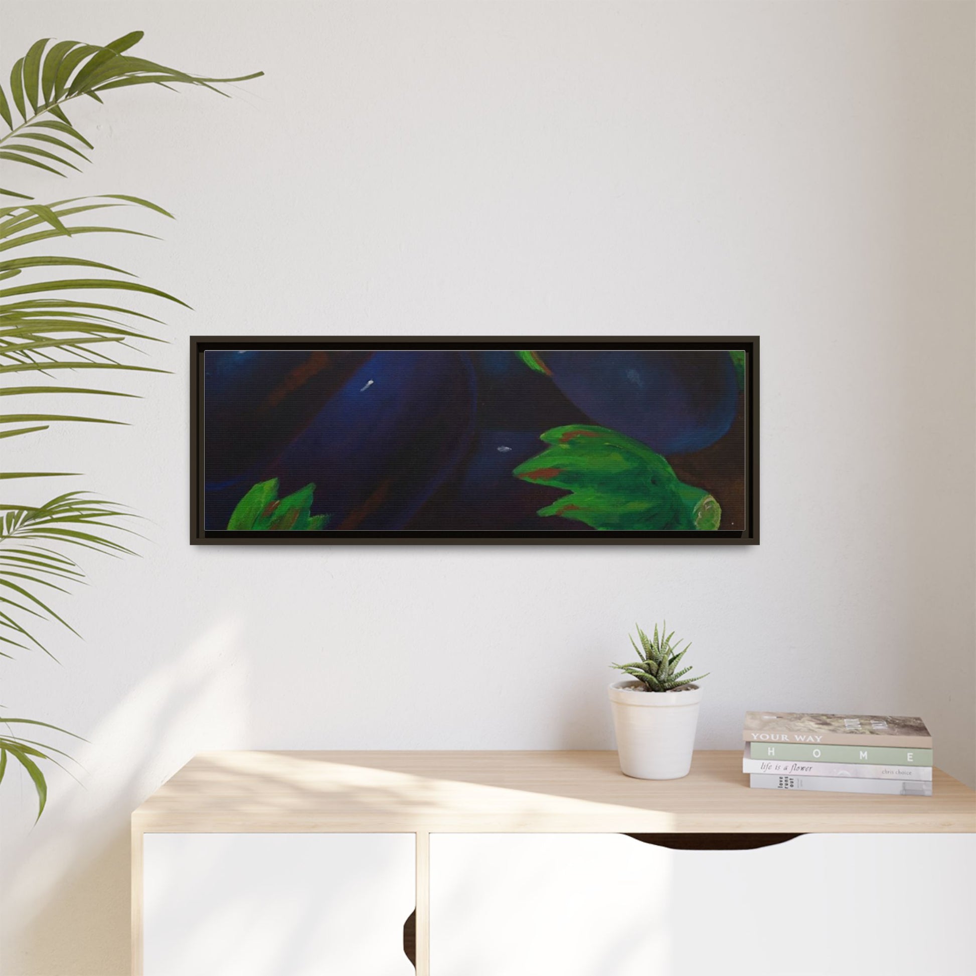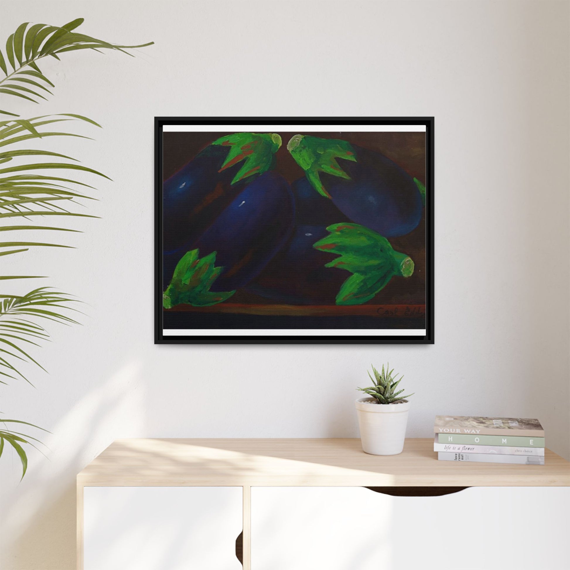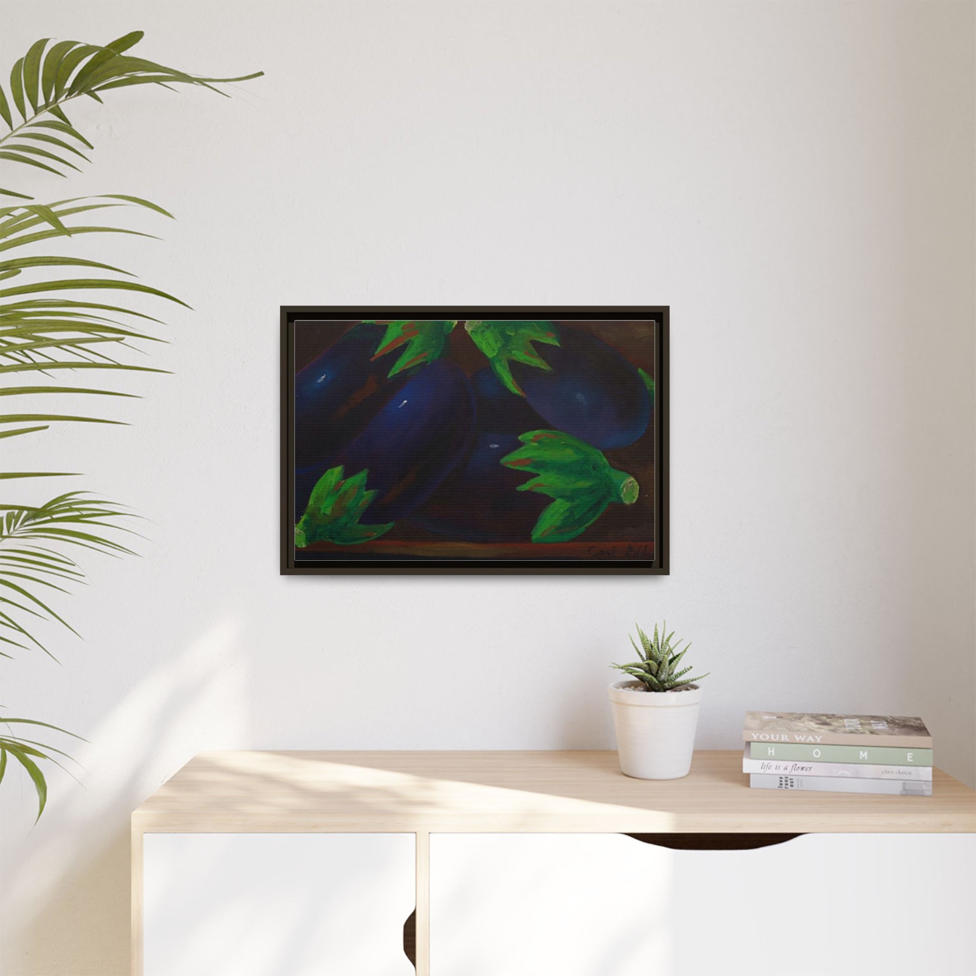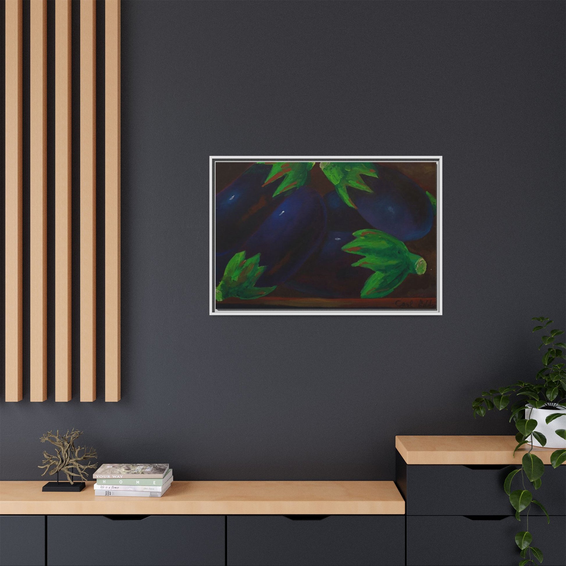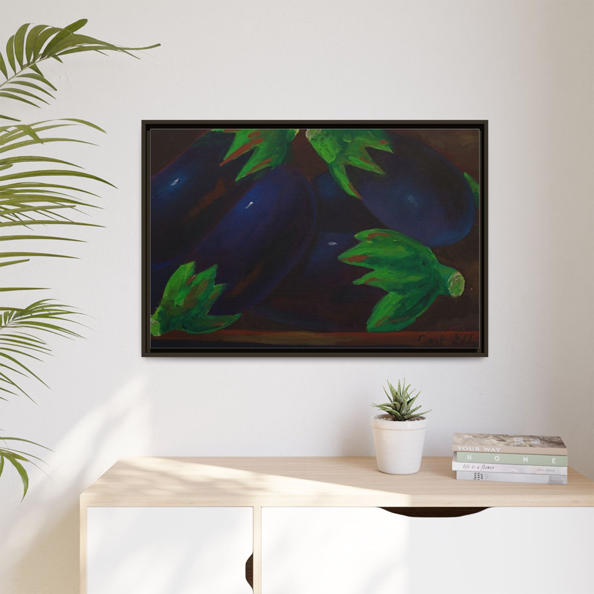 A tropical eggplant-themed canvas print that adds a touch of exotic charm to any room. Perfect for nature lovers and those seeking a unique wall decor piece. Ideal for home decoration, tropical-themed parties, and summer celebrations.