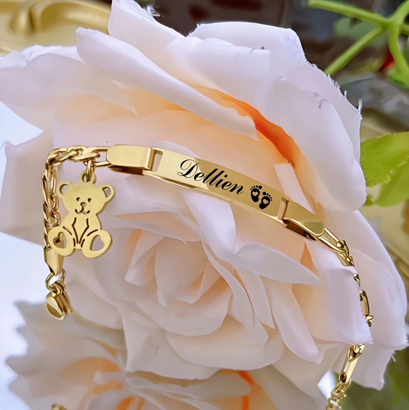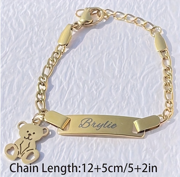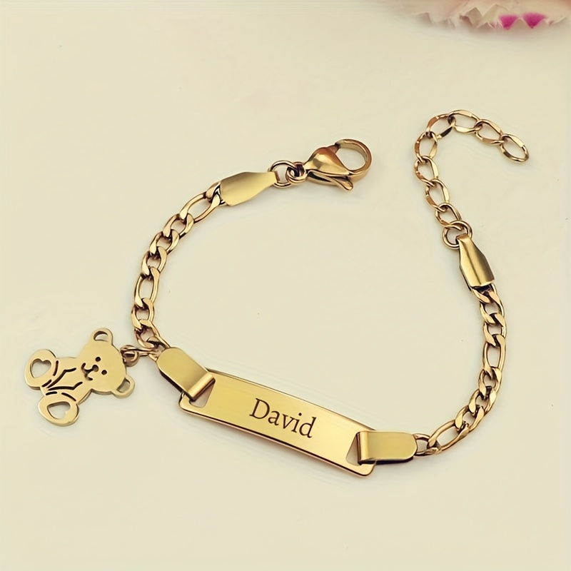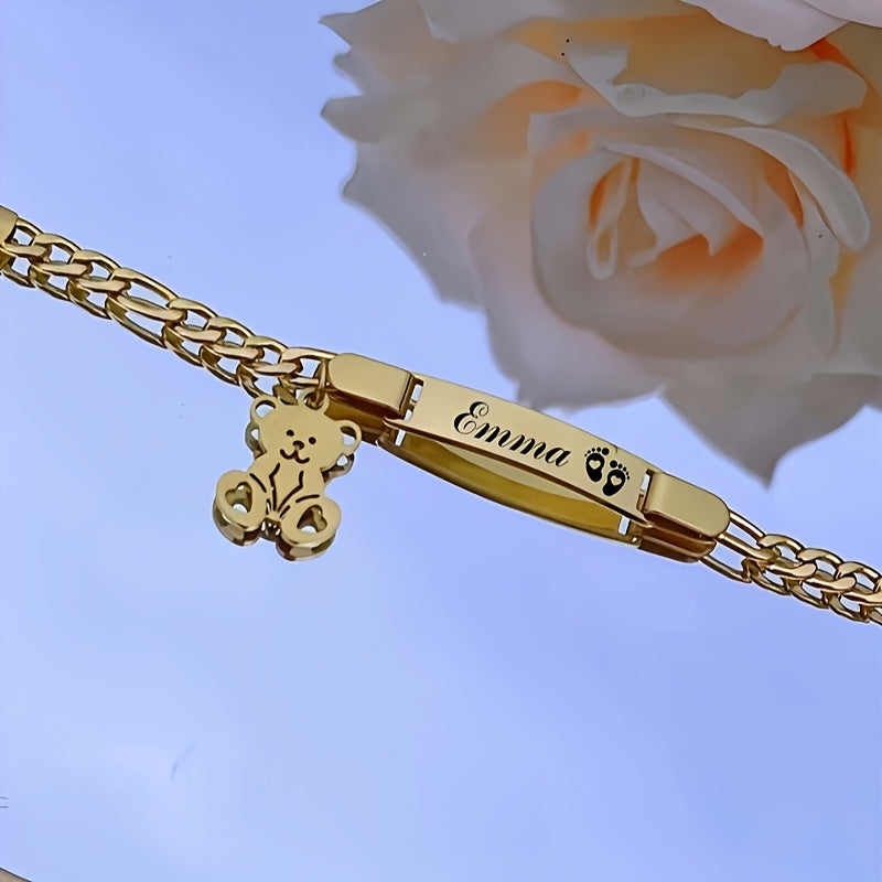 Custom Stainless Steel Bear Bracelet, Graduation Gift for kids, Holiday Wearing