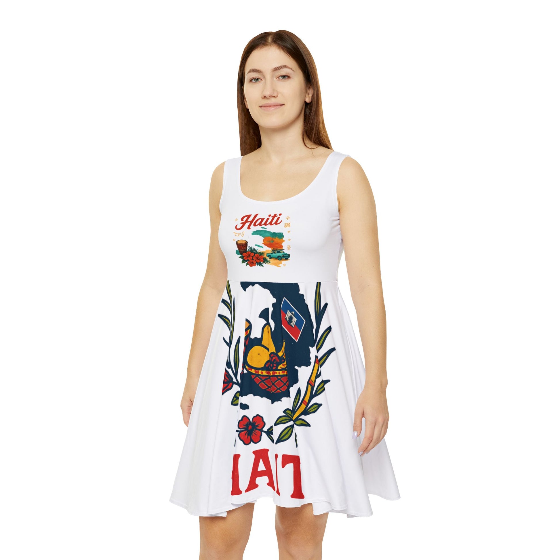 Haitian Floral Skater Dress, Vibrant Summer Dress, Women's Casual Dress, Vacation Outfit, Beachwear, Festival Clothing