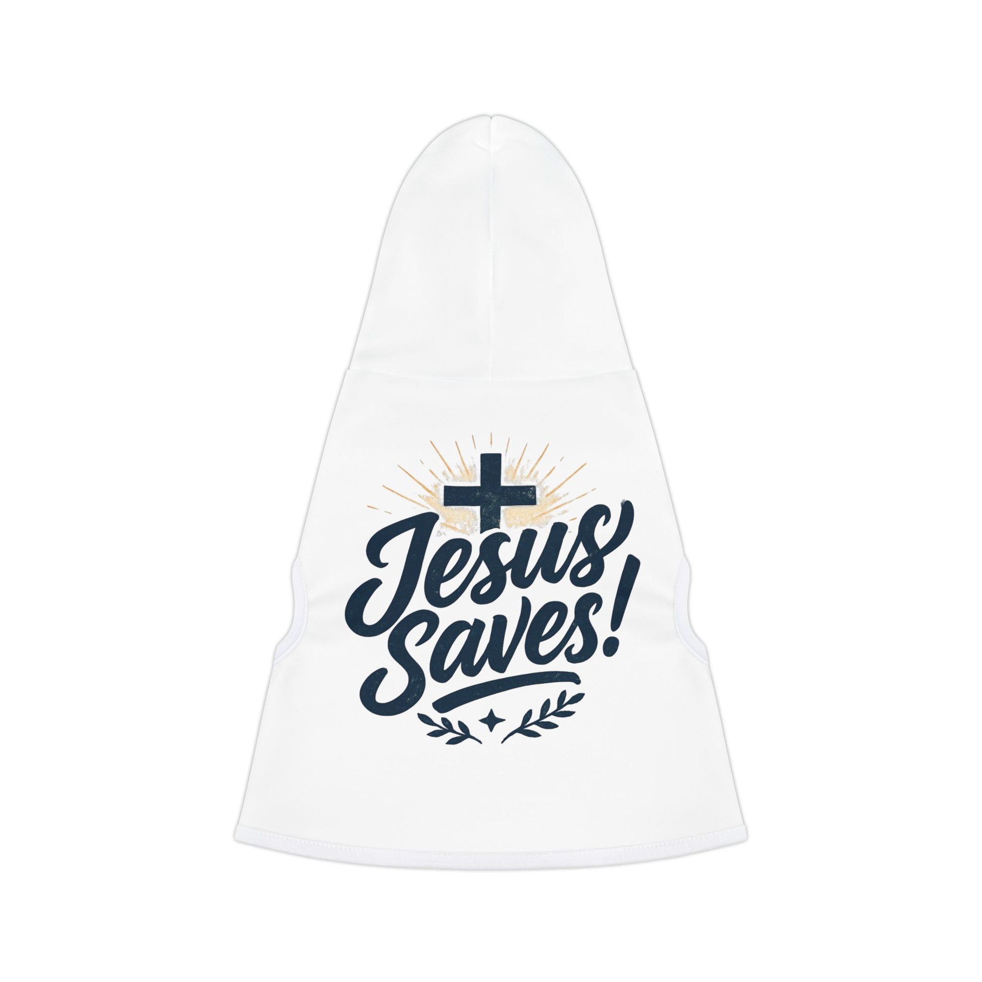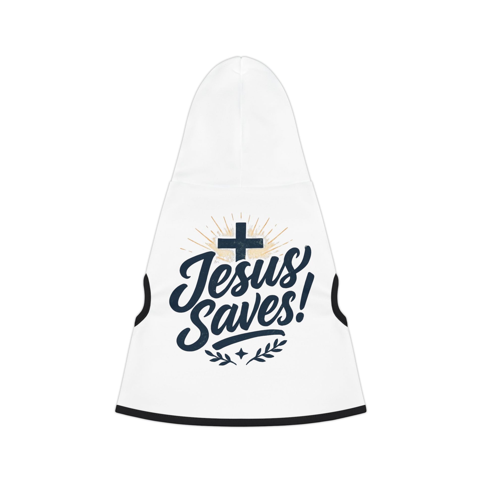 Stylish Pet Hoodie with Inspirational Message, Dog Apparel, Pet Clothing, Jesus Saves Design, Gift for Dog Lovers