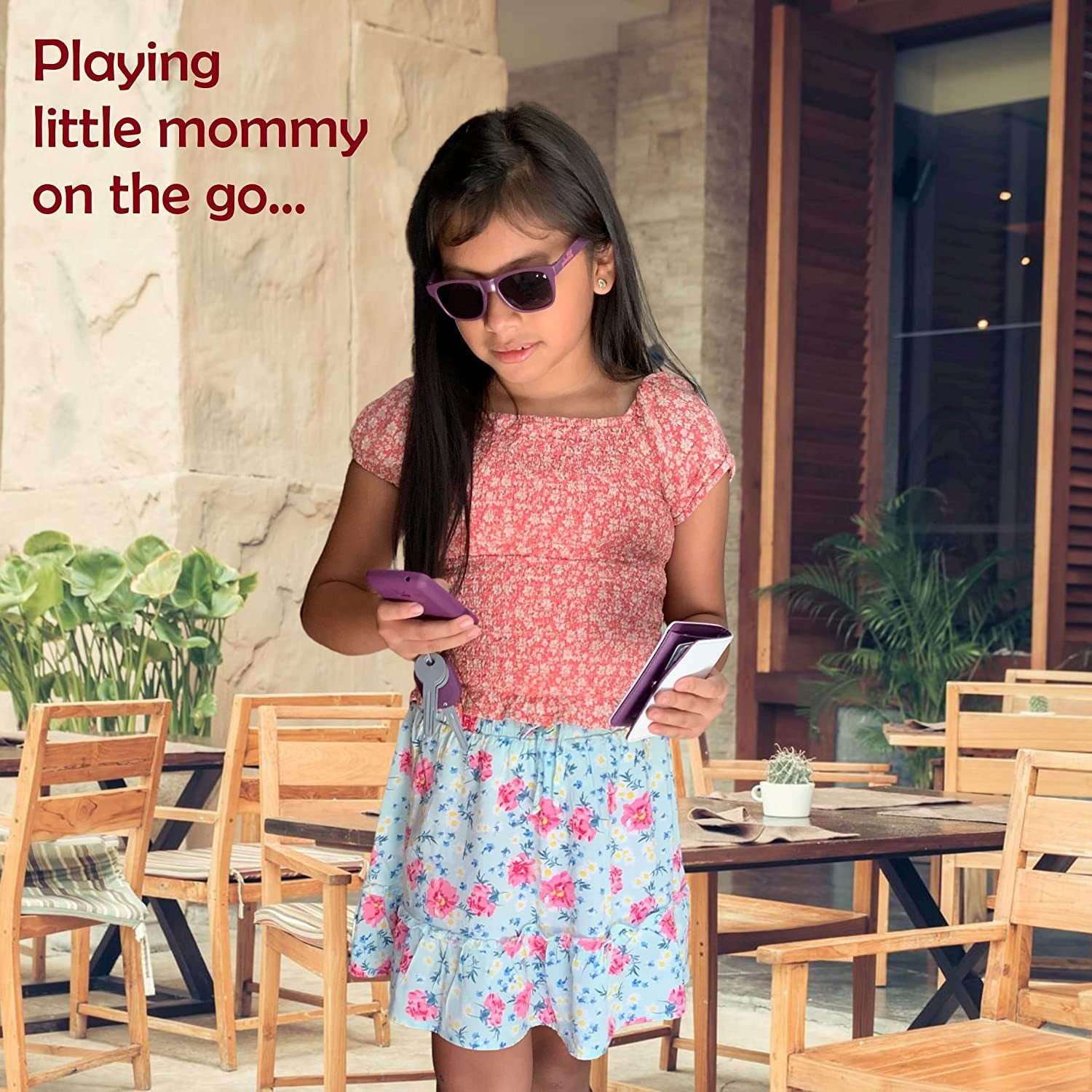 Toddler & Little Girls Pretend Play Purse Set | Role Play Accessories: Toy Phone, Wallet, Keys & Pretend Makeup | Toys for Girls Ages 3-8