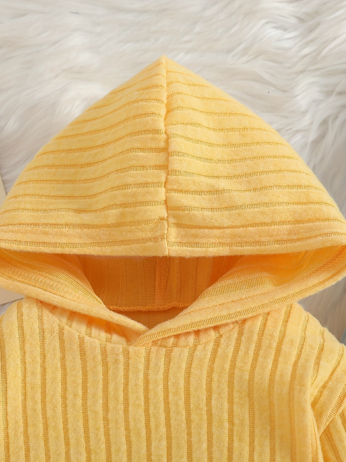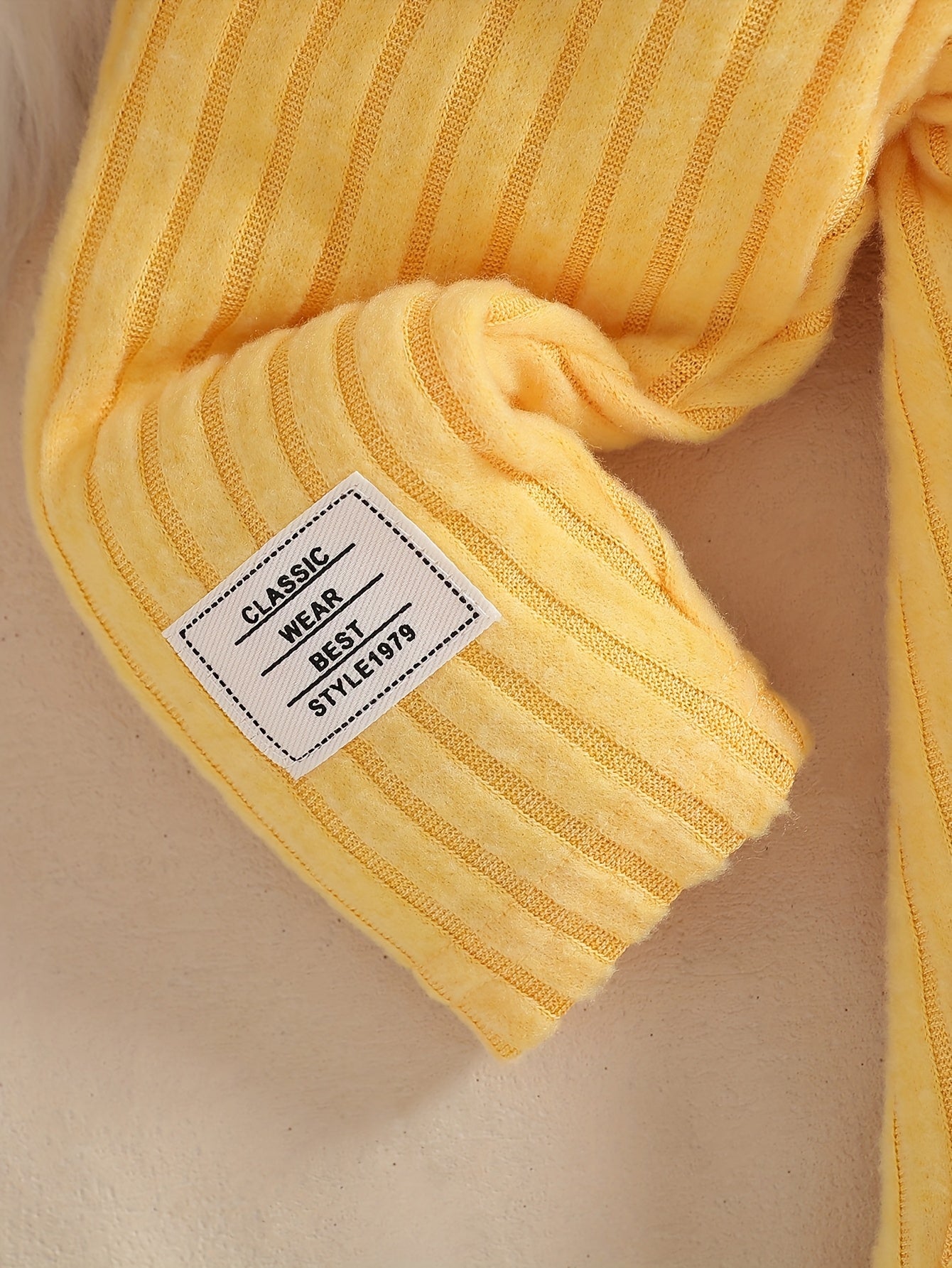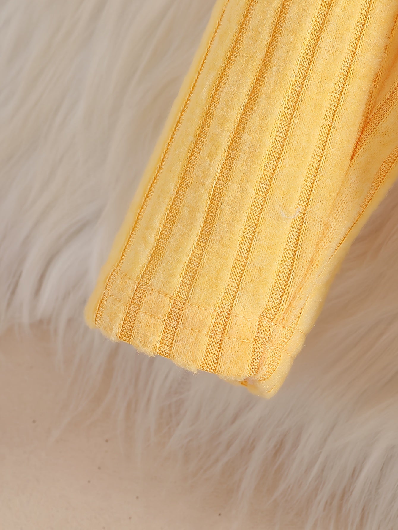 Yellow Set: 85% Polyester+10% Rayon+5% Elastane, Blue Set: 65% Polyester+30% Rayon+5% Elastane, Versatile For Baby Girls In Autumn And Winter, Soft And Comfortable, Warm Pit Stripe Long Sleeved And Long Pants Set Suitable For